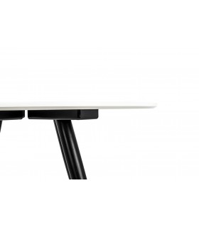 Stolik BOWER biały. Blat z praktyczną półką wykonany został z polipropylenu w kolorze białym z dodatkowym miejscem na przeprowadzenie przewodu, co znacznie ułatwia organizację.