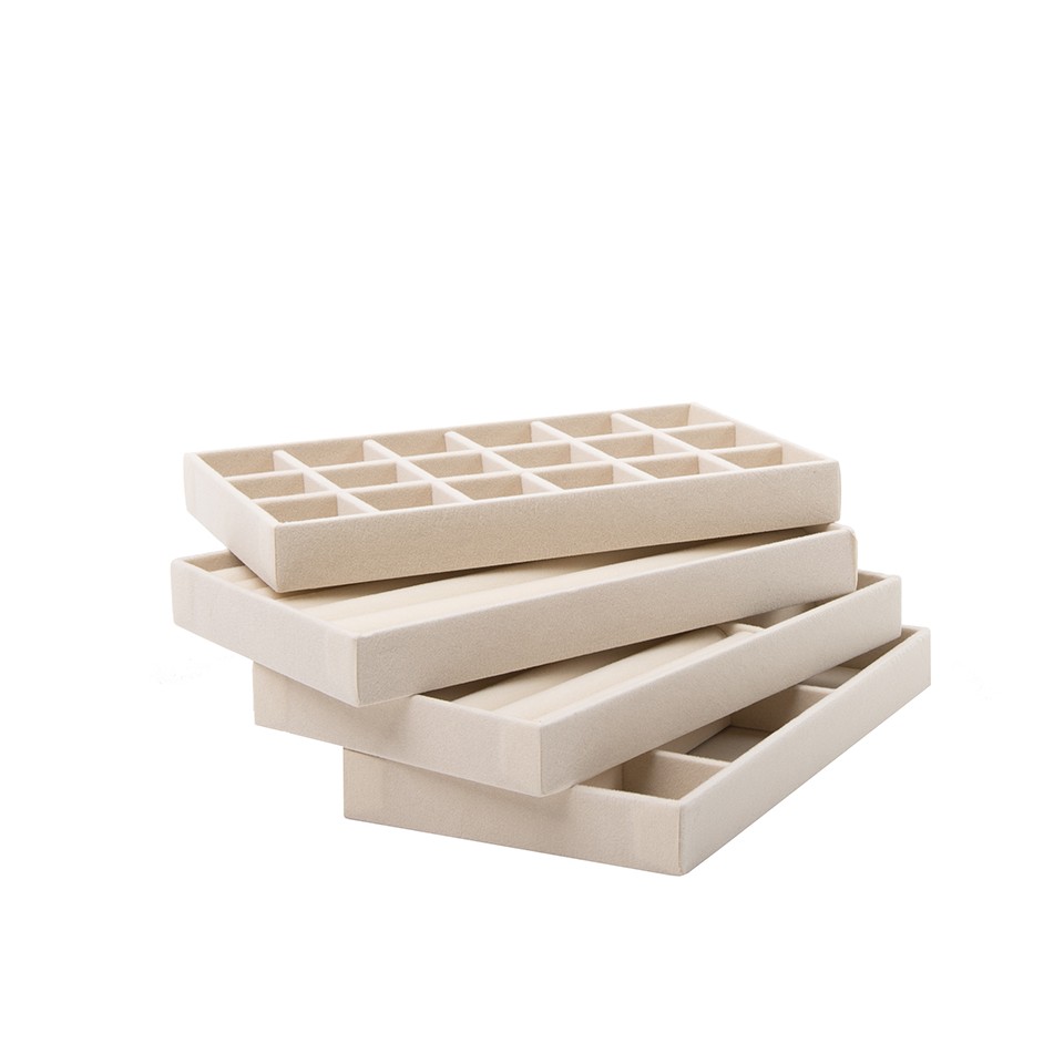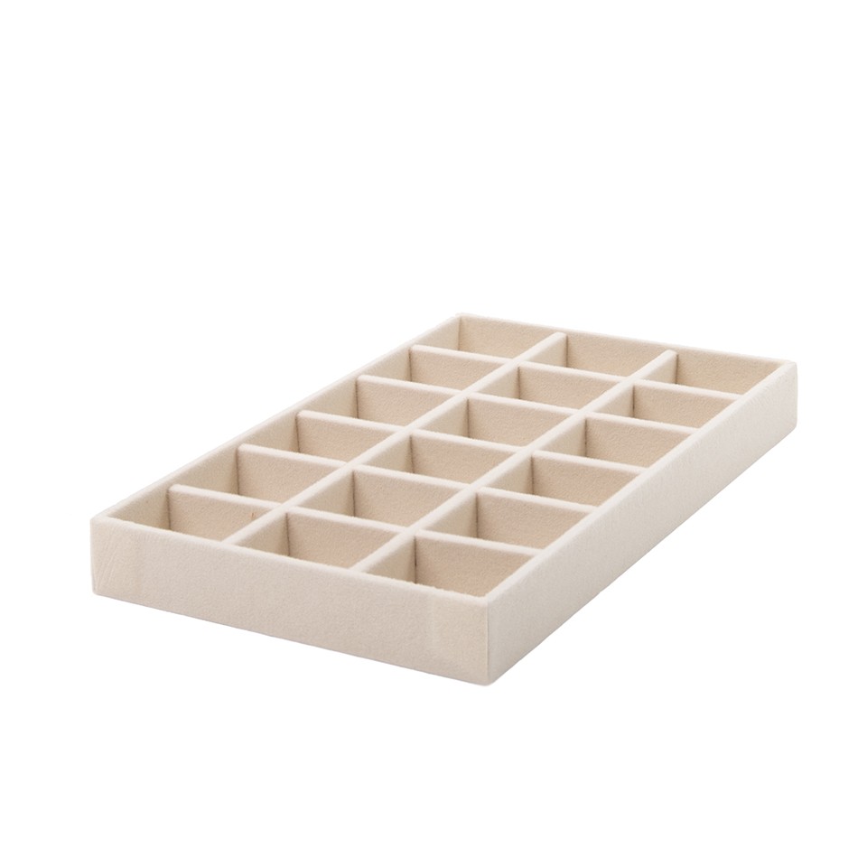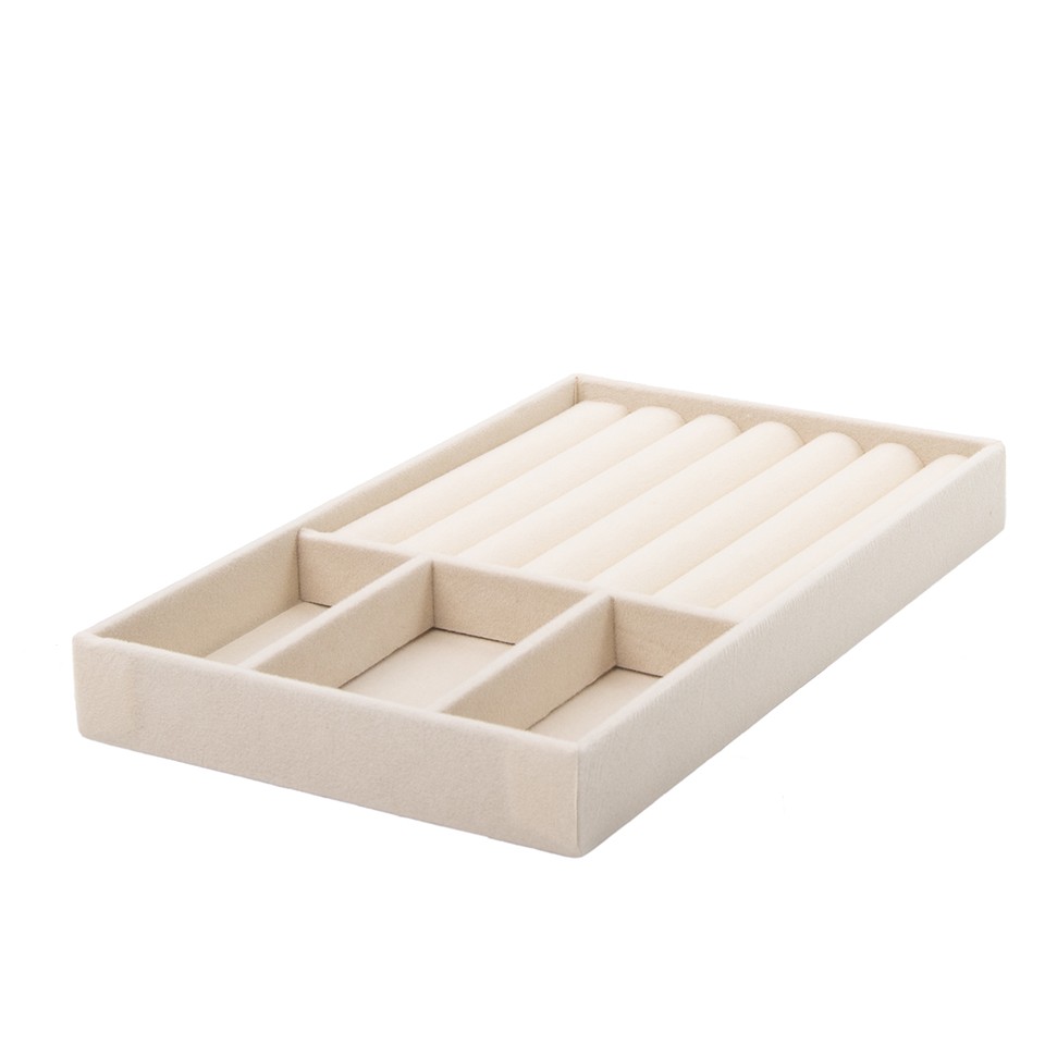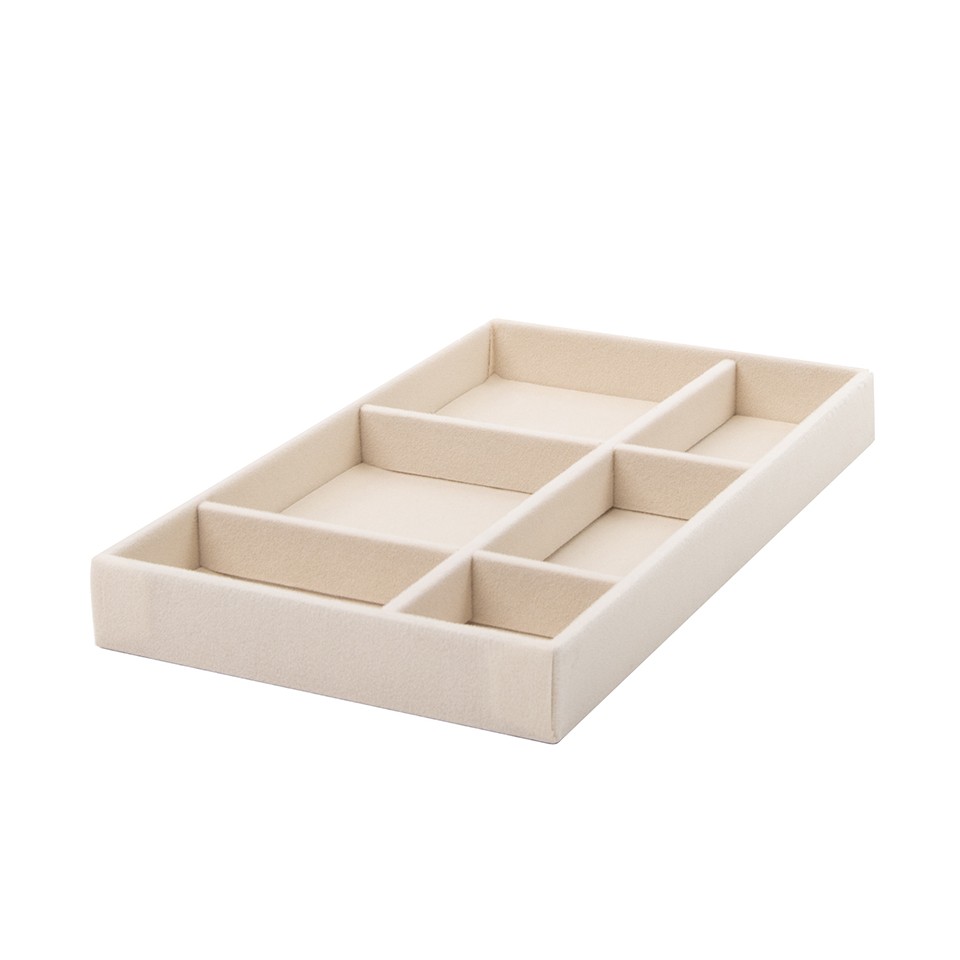 Wykonany z miękkiego, przyjemnego w dotyku weluru, organizer skutecznie chroni biżuterię przed zarysowaniami i uszkodzeniami. Szlachetna faktura materiału nadaje wnętrzu szuflady elegancki, luksusowy charakter.