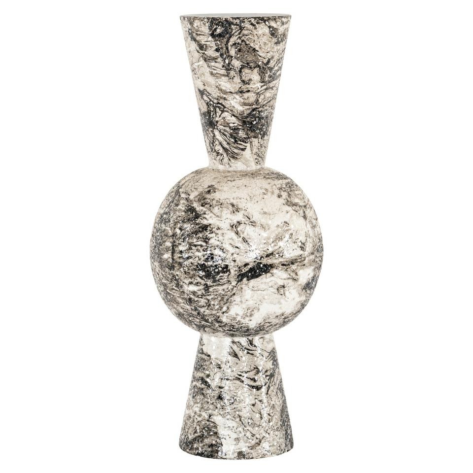 RICHMOND wazon FLORRY biały / czarny to rzeźbiarska dekoracja o geometrycznej formie i kontrastowym wykończeniu. Wykonany z metalu, zachwyca fakturą inspirowaną kamieniem i marmurem. Idealny do suchych kompozycji lub jako samodzielna ozdoba wnętrza.