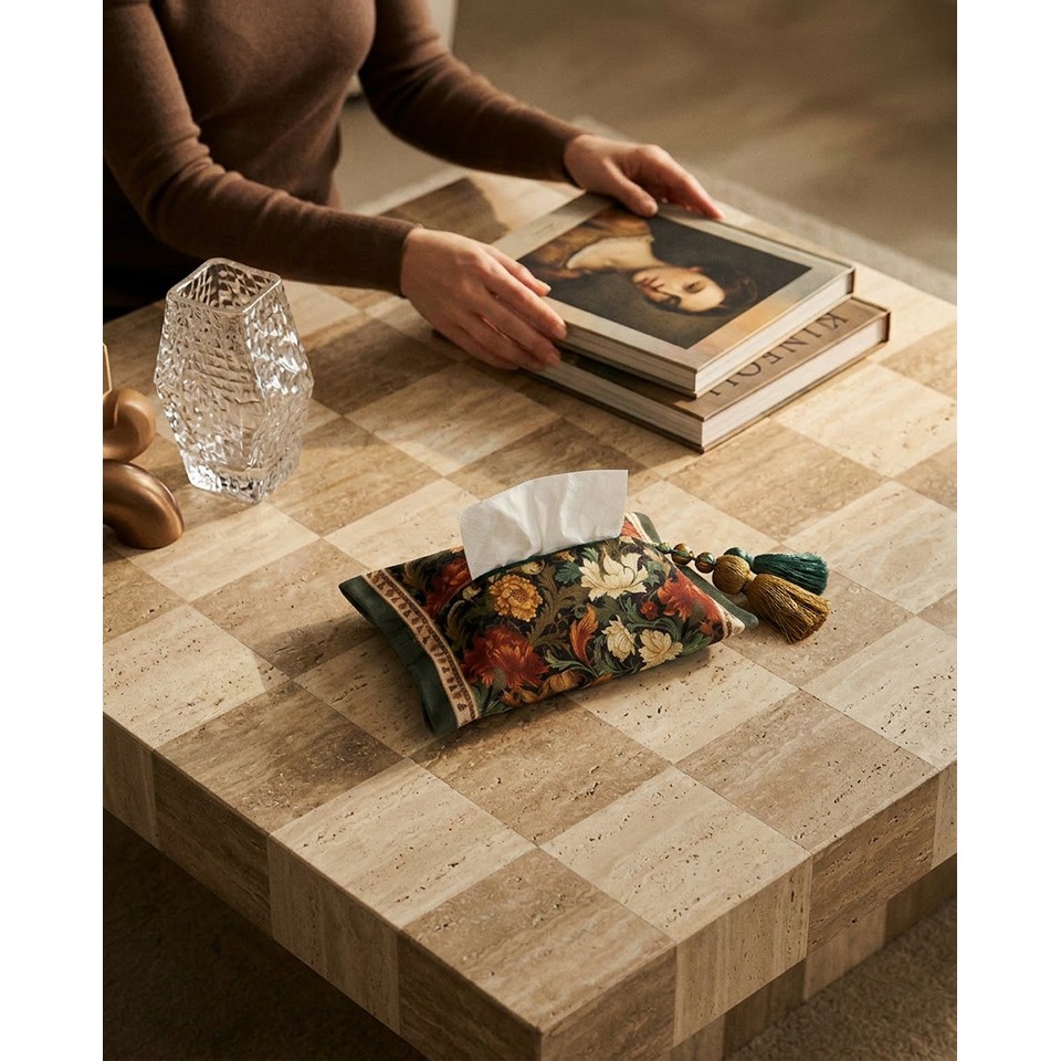 Pojemnik na chusteczki SHP BAMSE. to wyjątkowy dodatek dekoracyjny, który łączy elegancję weluru z bogatym wzornictwem o klasycznym