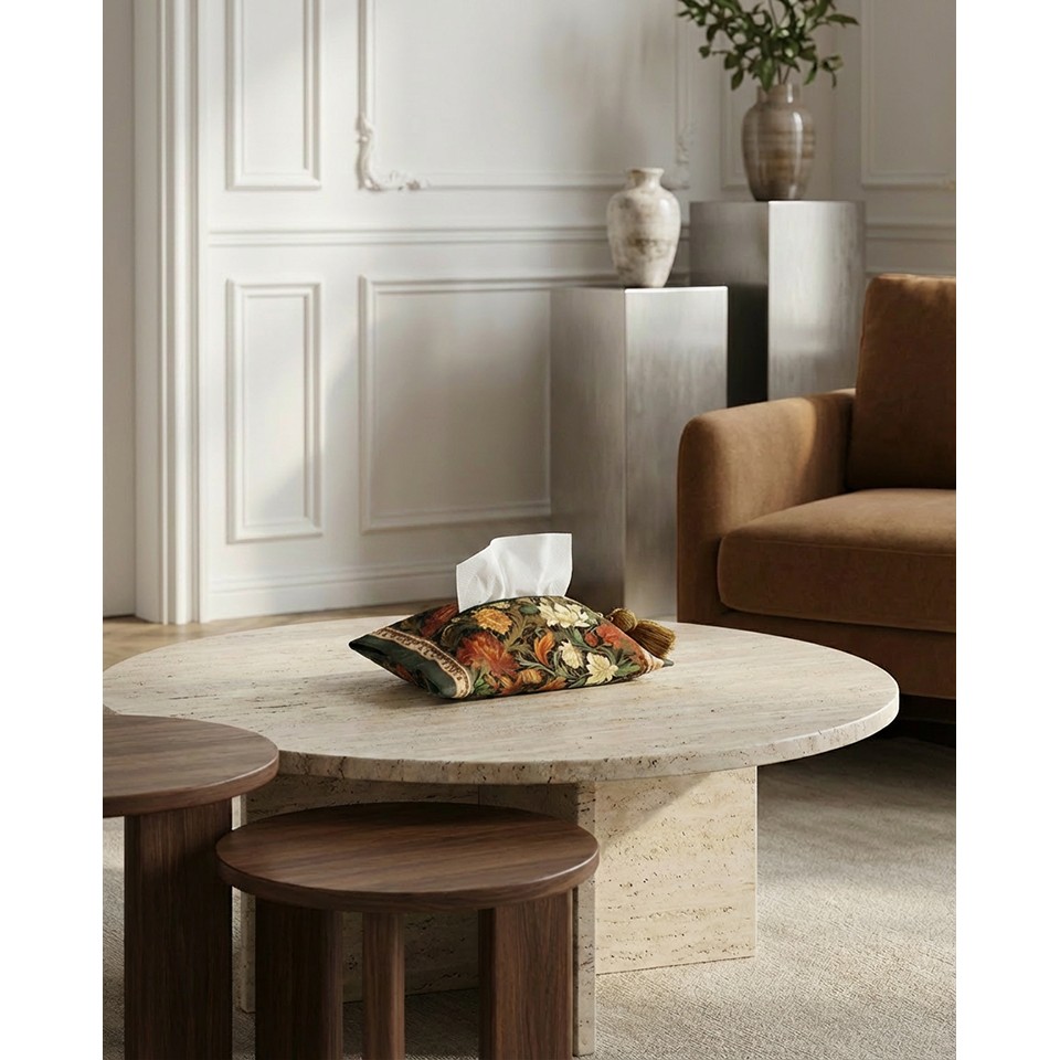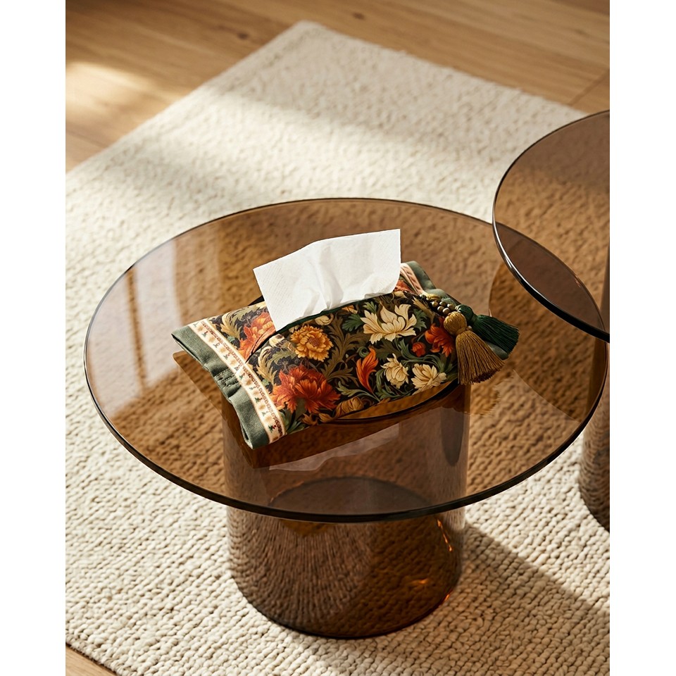 Pojemnik na chusteczki SHP BAMSE. zachwyca bogatym, dekoracyjnym wzorem oraz starannie dopracowanym wykończeniem. Kwiatowy motyw w ciepłych odcieniach nadaje mu klasycznego, nieco vintage’owego charakteru, który wprowadza do wnętrza przytulność i styl.