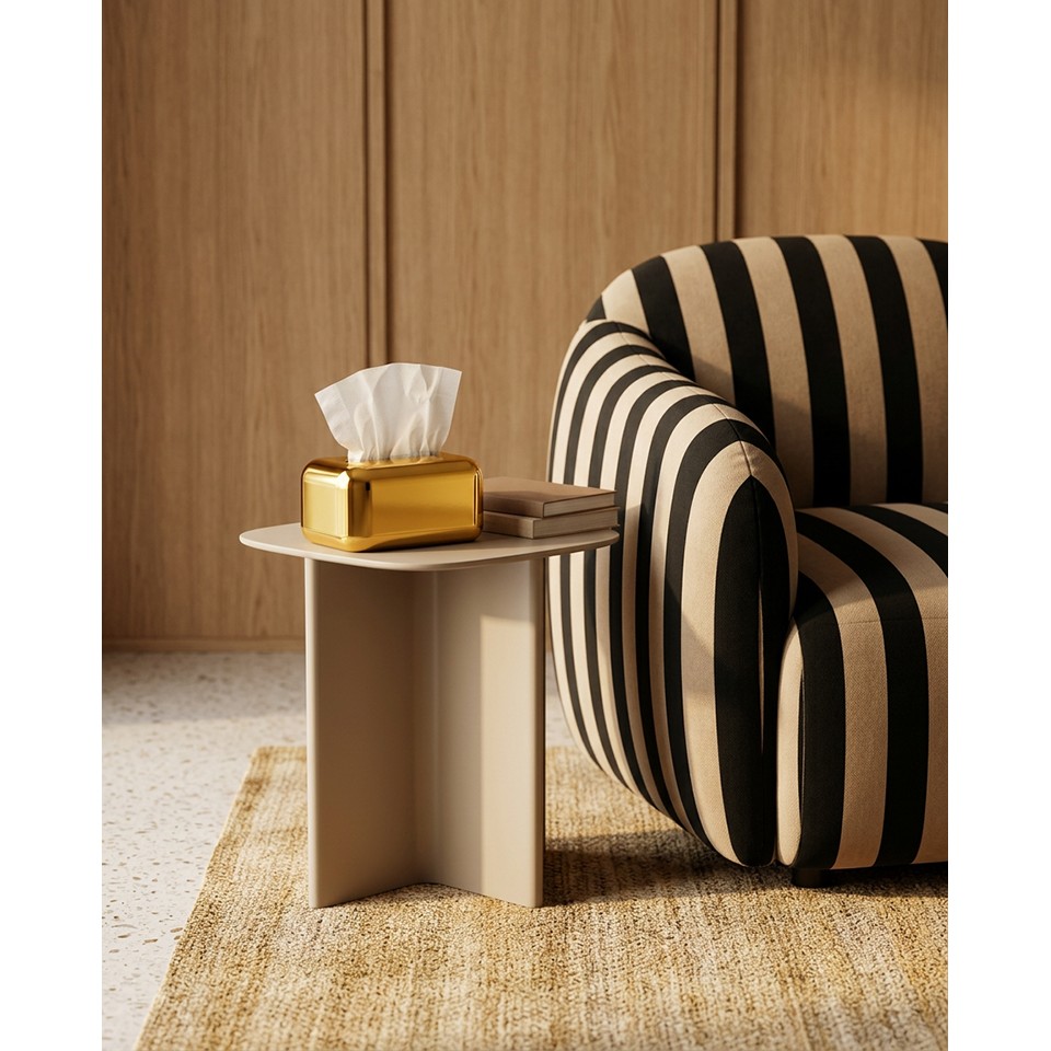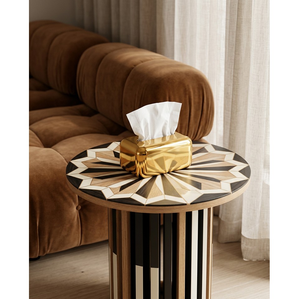 Praktyczny otwór umożliwia wygodne przechowywanie chusteczek, łącząc codzienną funkcjonalność z estetyką dekoracyjnego dodatku. To prosty sposób na uporządkowanie przestrzeni i nadanie jej wyjątkowego blasku.