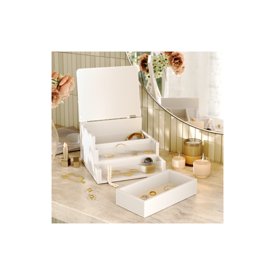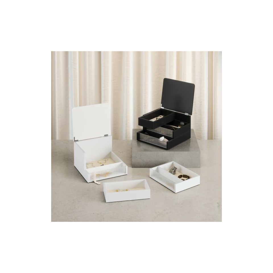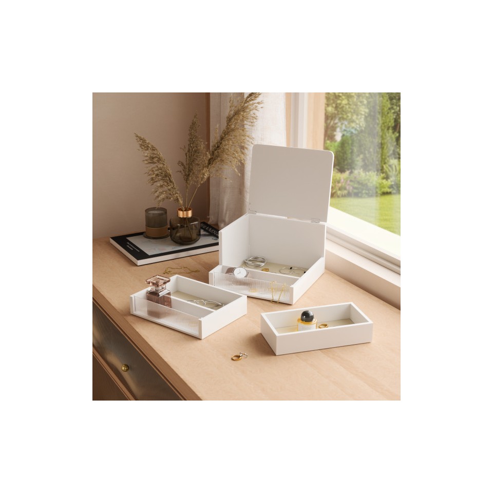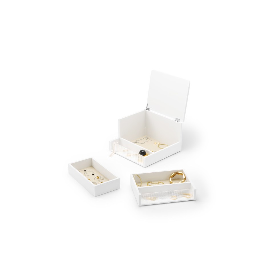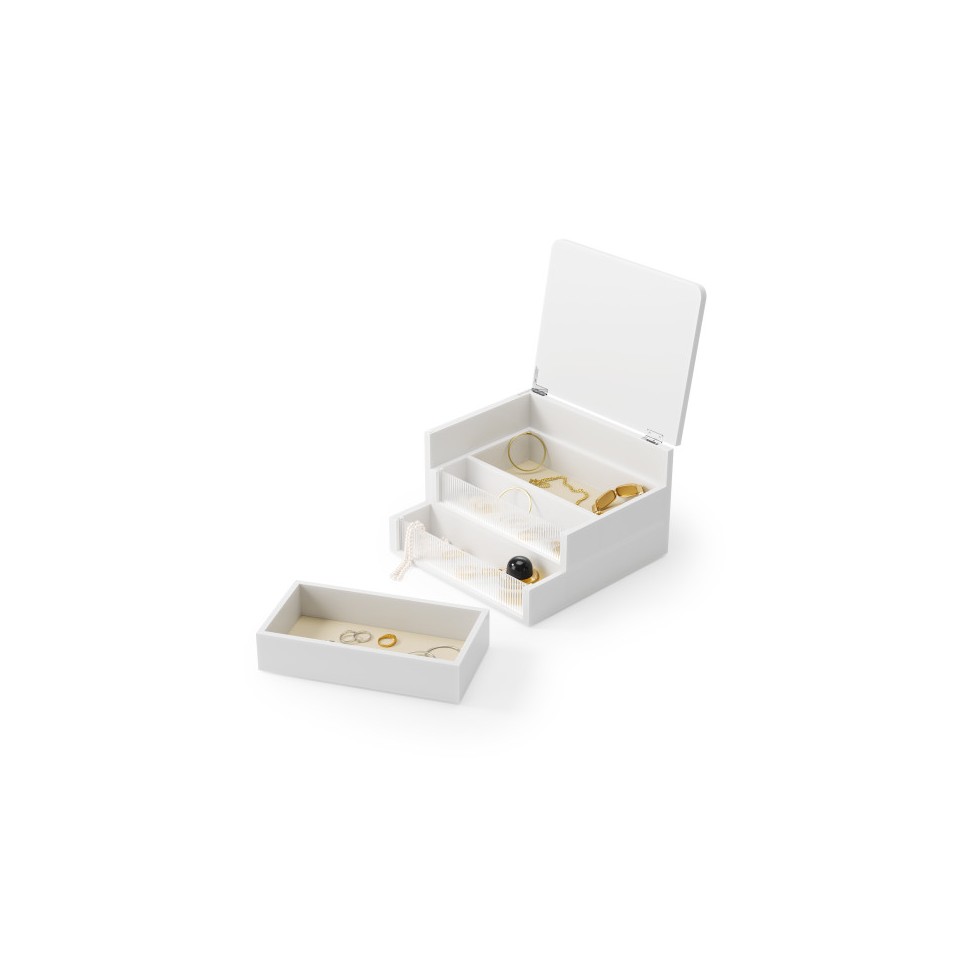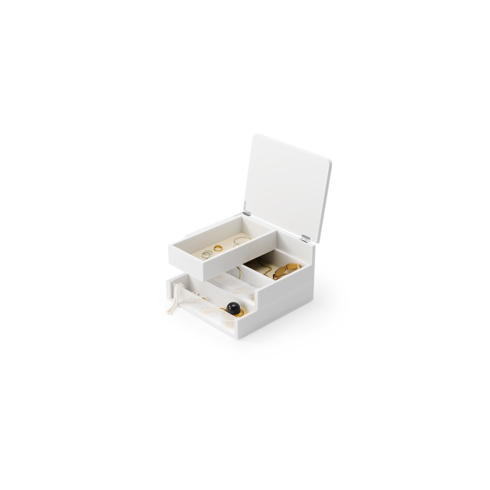 UMBRA pojemnik do przechowywania MALIBU biały to eleganckie i funkcjonalne pudełko idealne do organizacji biżuterii oraz drobnych akcesoriów.