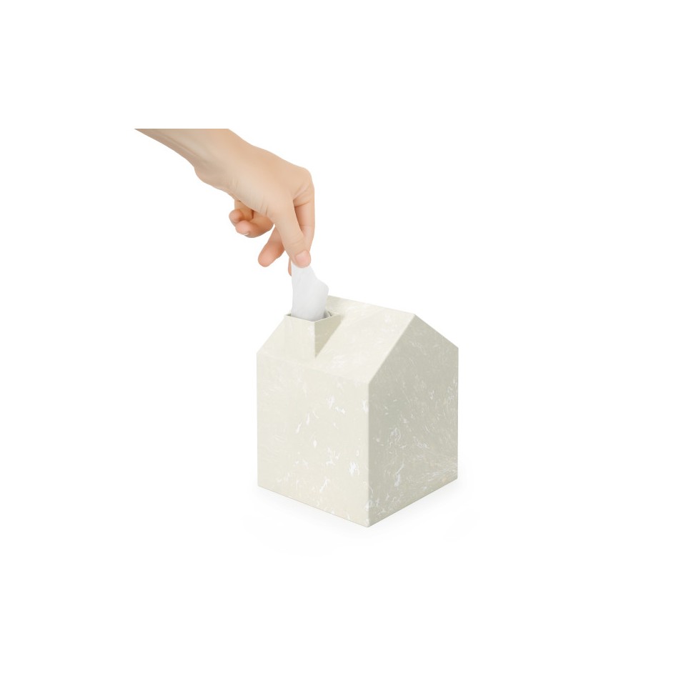 Model zaprojektowano tak, by estetycznie ukryć standardowe, kwadratowe pudełko chusteczek, nadając mu bardziej dekoracyjny i nowoczesny wygląd. Jednocześnie minimalistyczna linia oraz stonowany beżowy kolor sprawiają, że produkt doskonale komponuje się z wieloma stylami wnętrz – od skandynawskich po współczesne.
