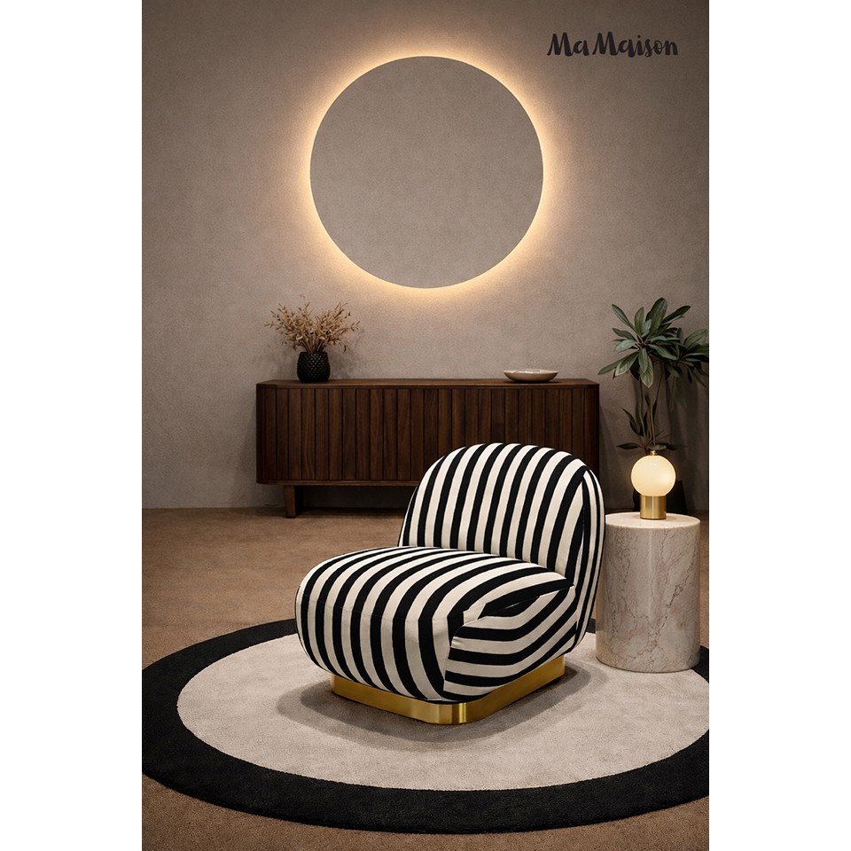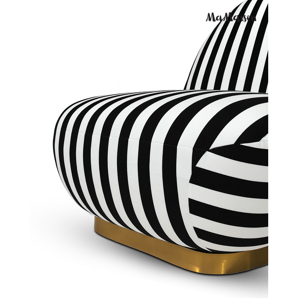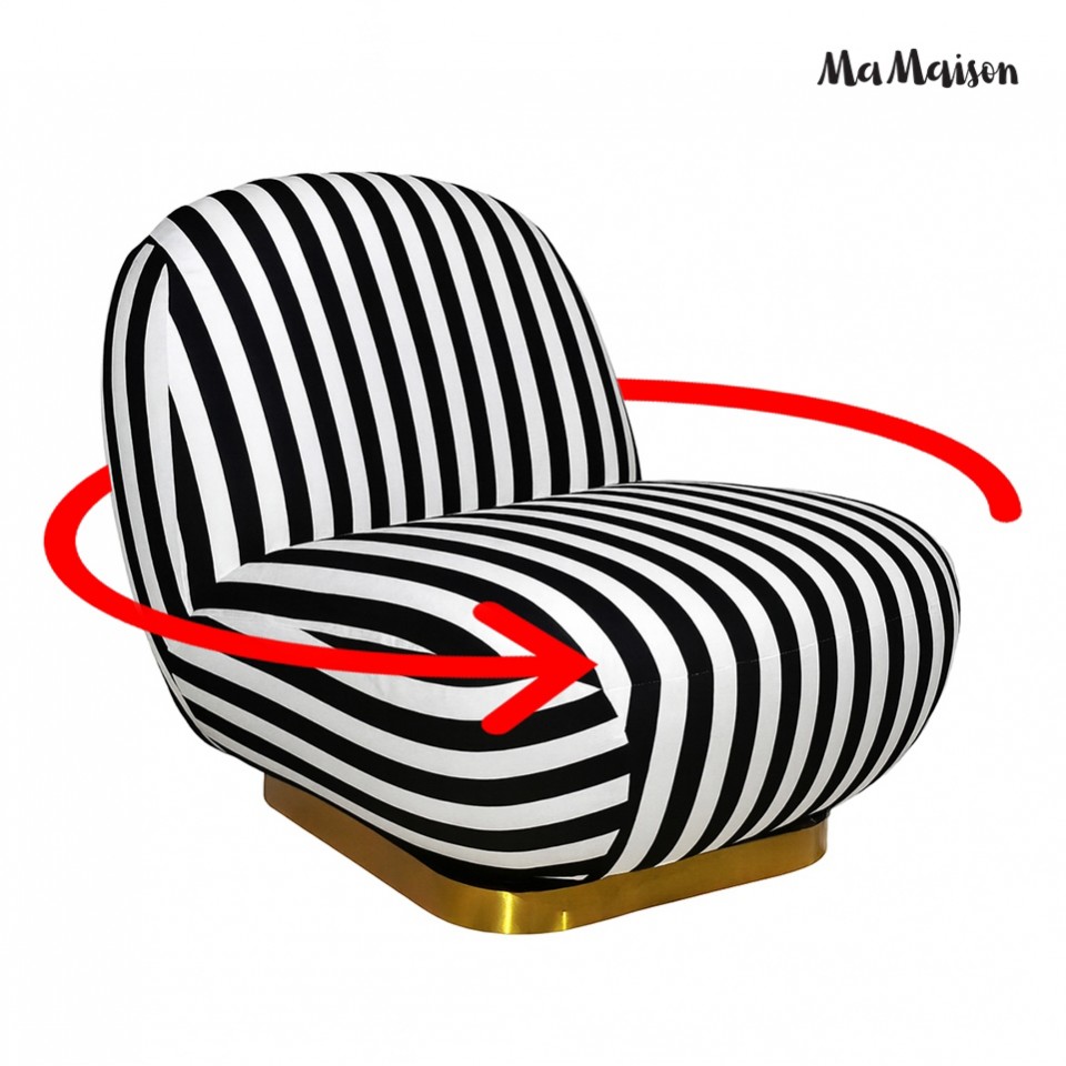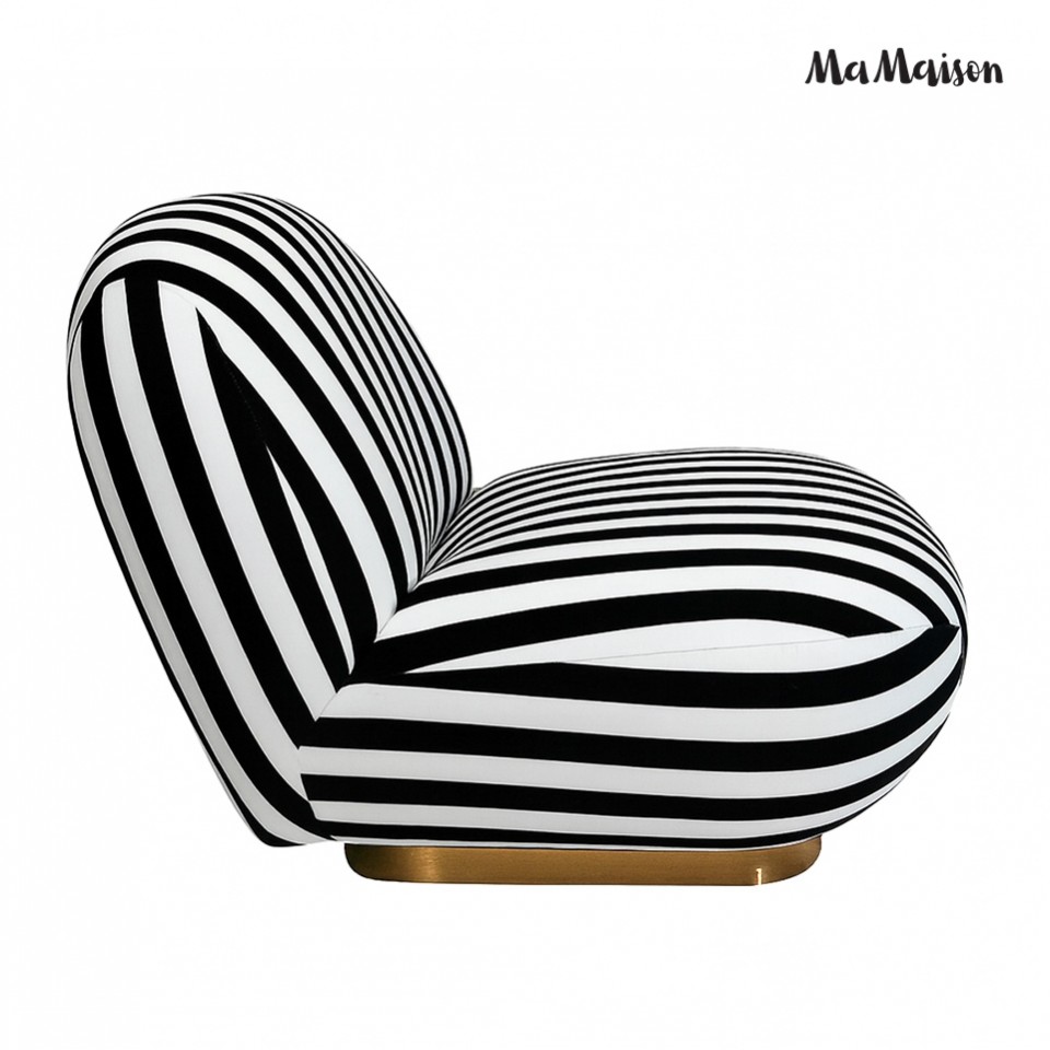 Wyrazisty mebel, który przyciąga wzrok swoim dynamicznym wzorem czarno-białych pasów.