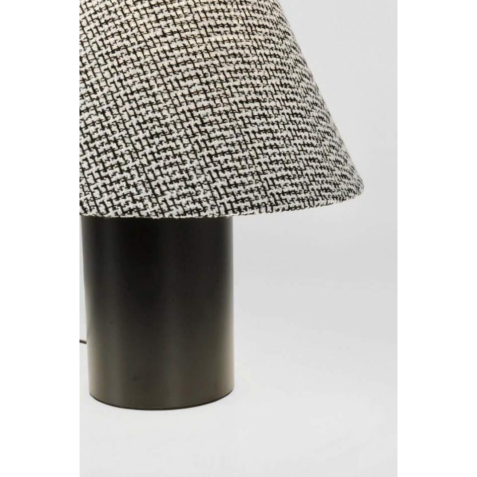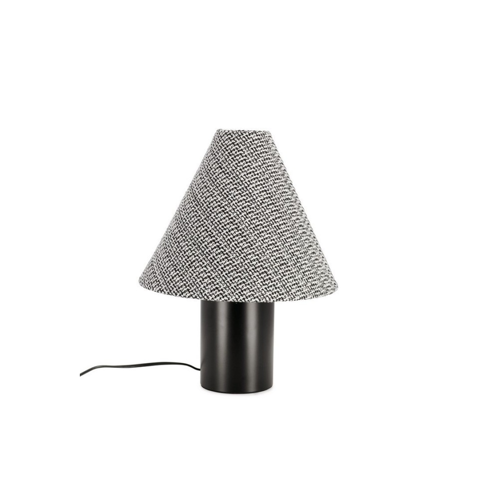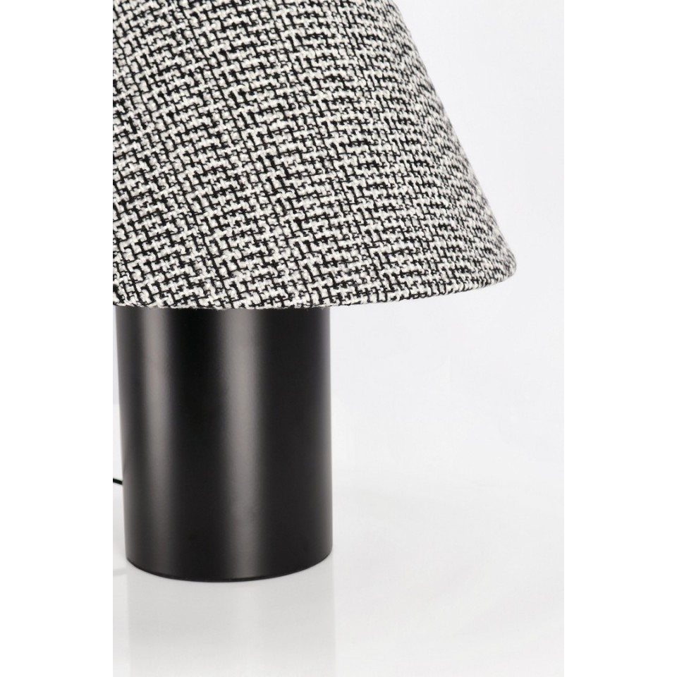 Dzięki metalowej podstawie i kloszowi z materiału lampa łączy w sobie stylową elegancję z trwałością.