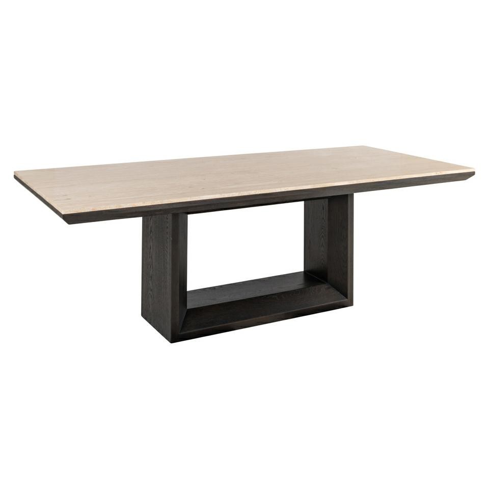 Imponujący blat z trawertynu o grubości 6 cm nadaje całości elegancji i ponadczasowego charakteru.