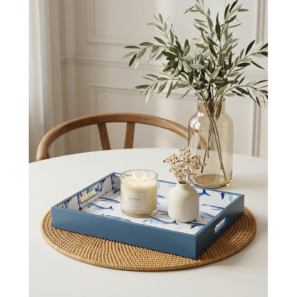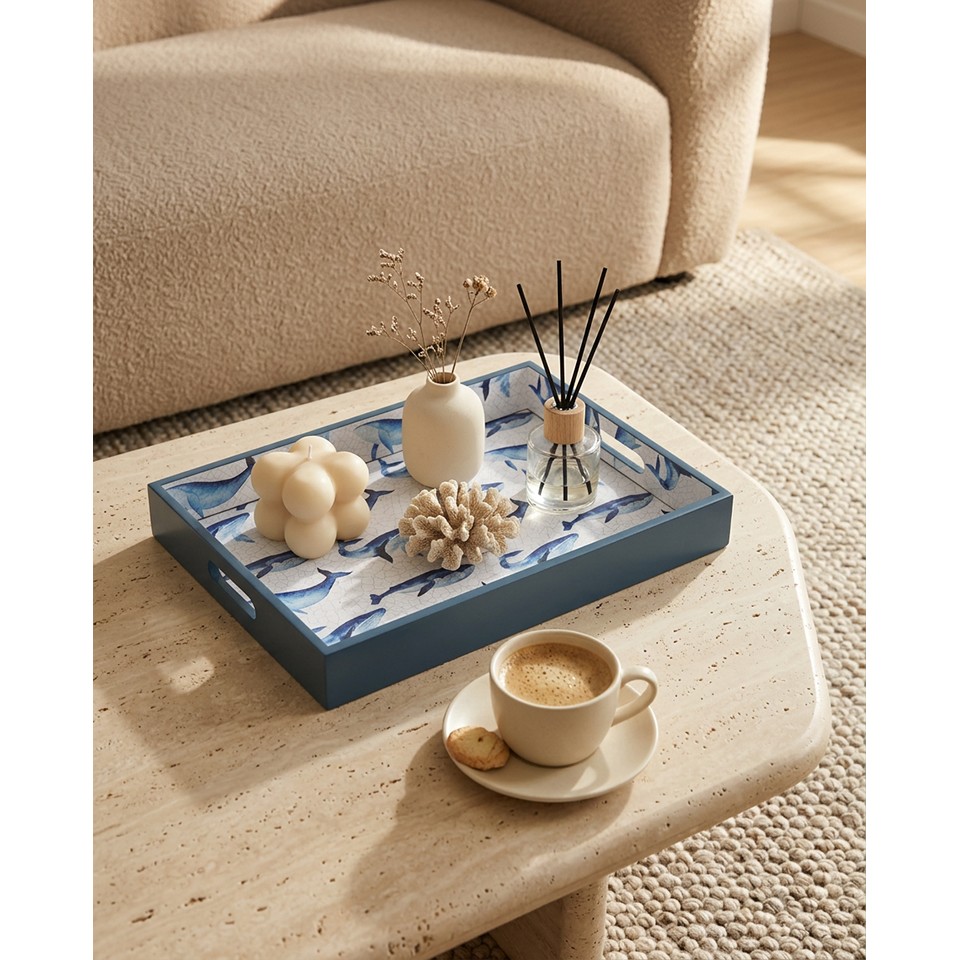 Powierzchnię zdobi subtelny wzór wielorybów, który nadaje całości wyjątkowego, dekoracyjnego charakteru.