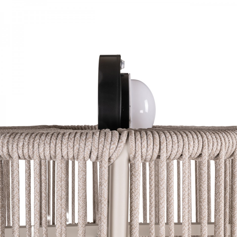 Ażurowy abażur z plecionej liny daje przyjemne, rozproszone światło, idealne do wieczornego relaksu.