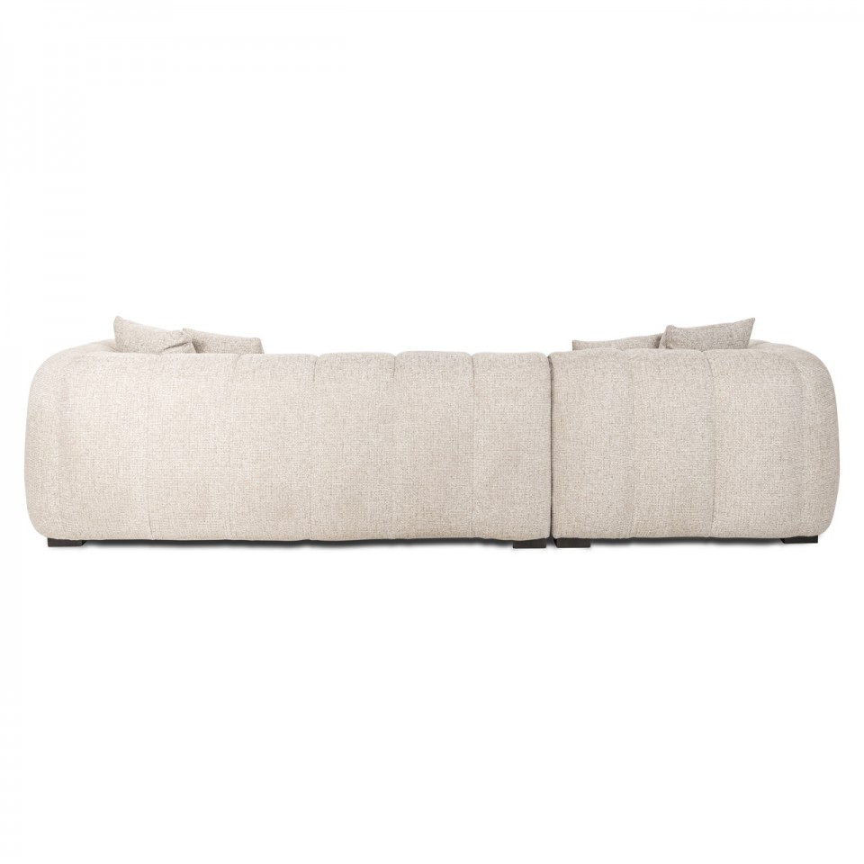 Delikatnie zaokrąglone linie oraz wyraźnie zaznaczone segmenty podkreślają nowoczesny, ale przytulny charakter sofy.