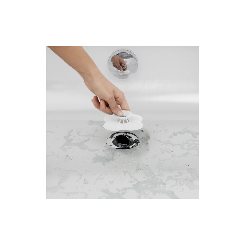 Wystarczy nacisnąć środkowy przycisk, aby umożliwić swobodny przepływ wody i zatrzymać włosy, lub docisnąć krawędzie, by szczelnie zamknąć odpływ.