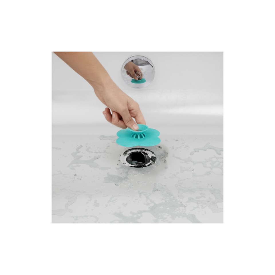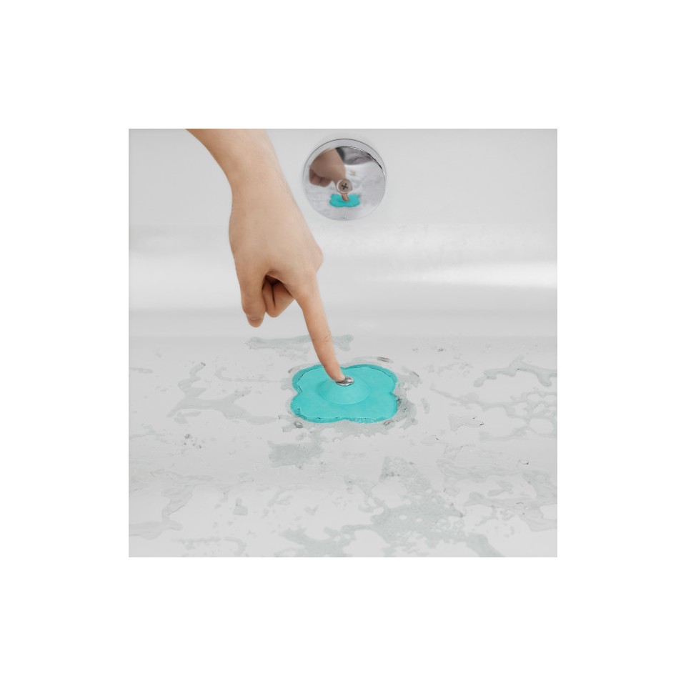 Wystarczy nacisnąć środkowy przycisk, aby umożliwić swobodny przepływ wody i zatrzymać włosy, lub docisnąć krawędzie, by szczelnie zamknąć odpływ.