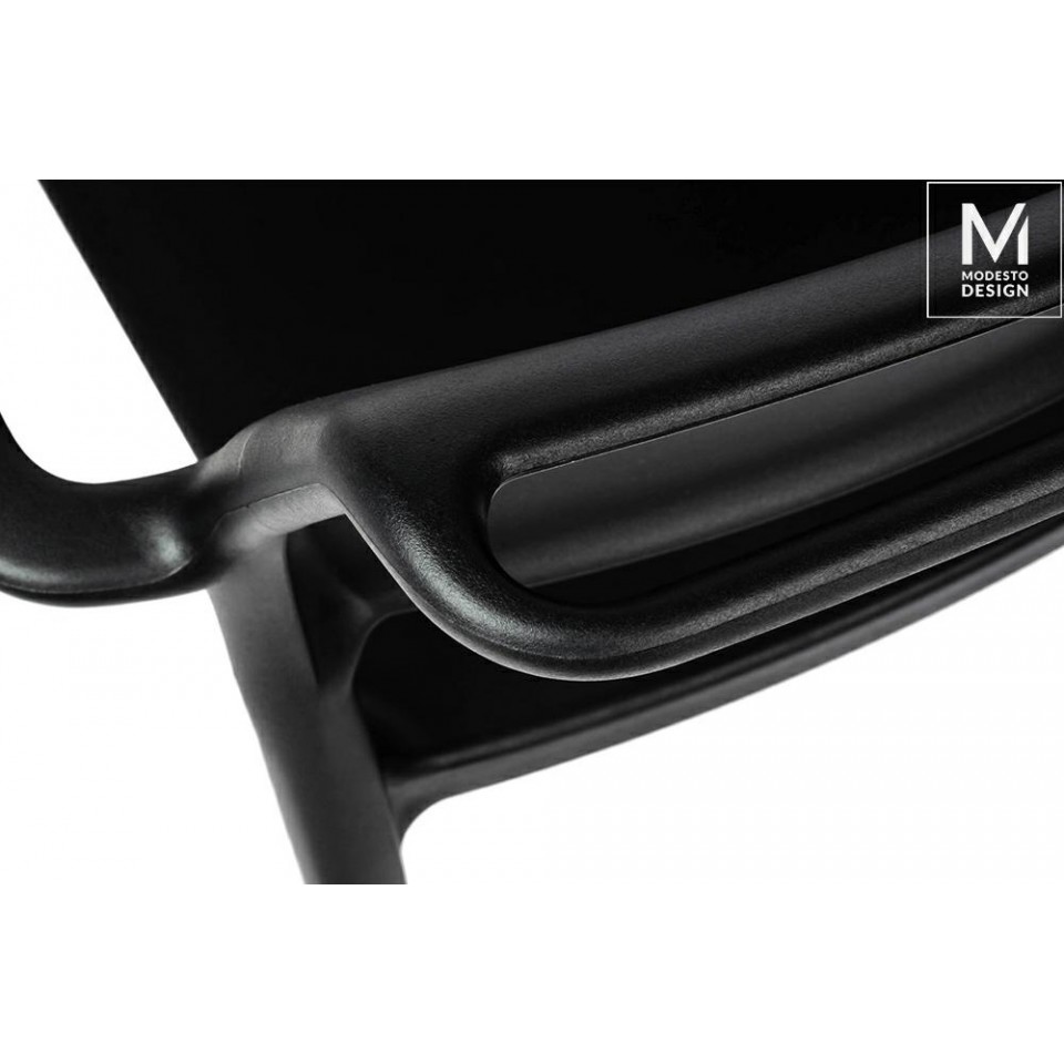 Krzesło Petra marki MODESTO DESIGN, zostało wykonane z najwyższej jakości polipropylenu w kolorze czarnym z matowym wykończeniem.