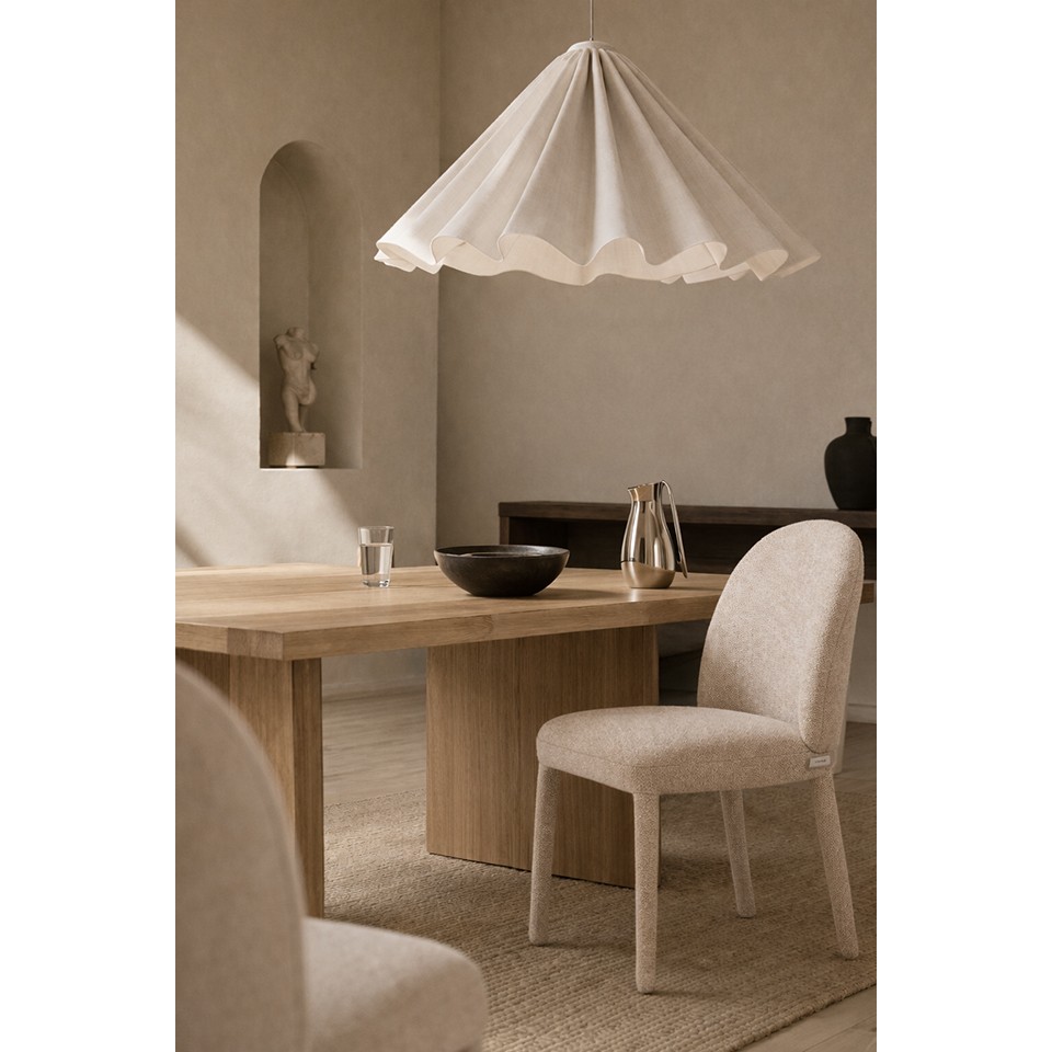 Tapicerka wykonana w 100% z poliestru zachwyca miękką, przyjemną w dotyku strukturą, wprowadzając do wnętrza ciepło i subtelną elegancję.