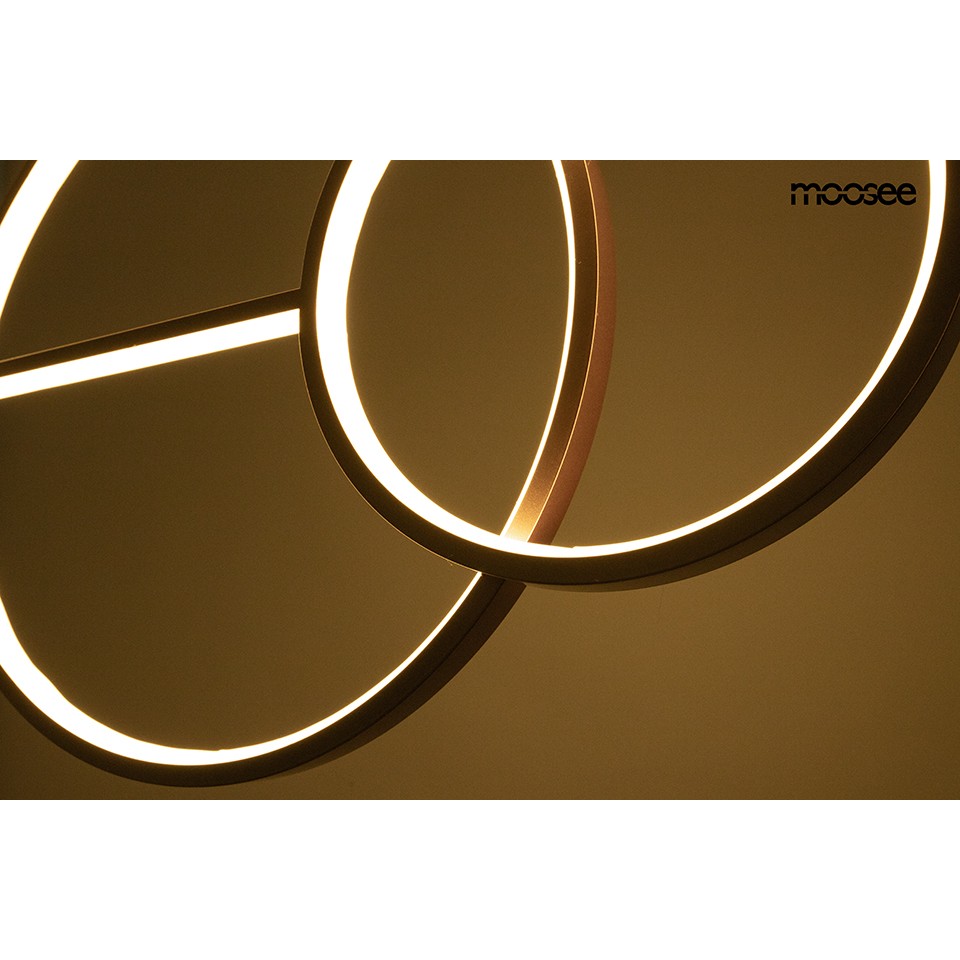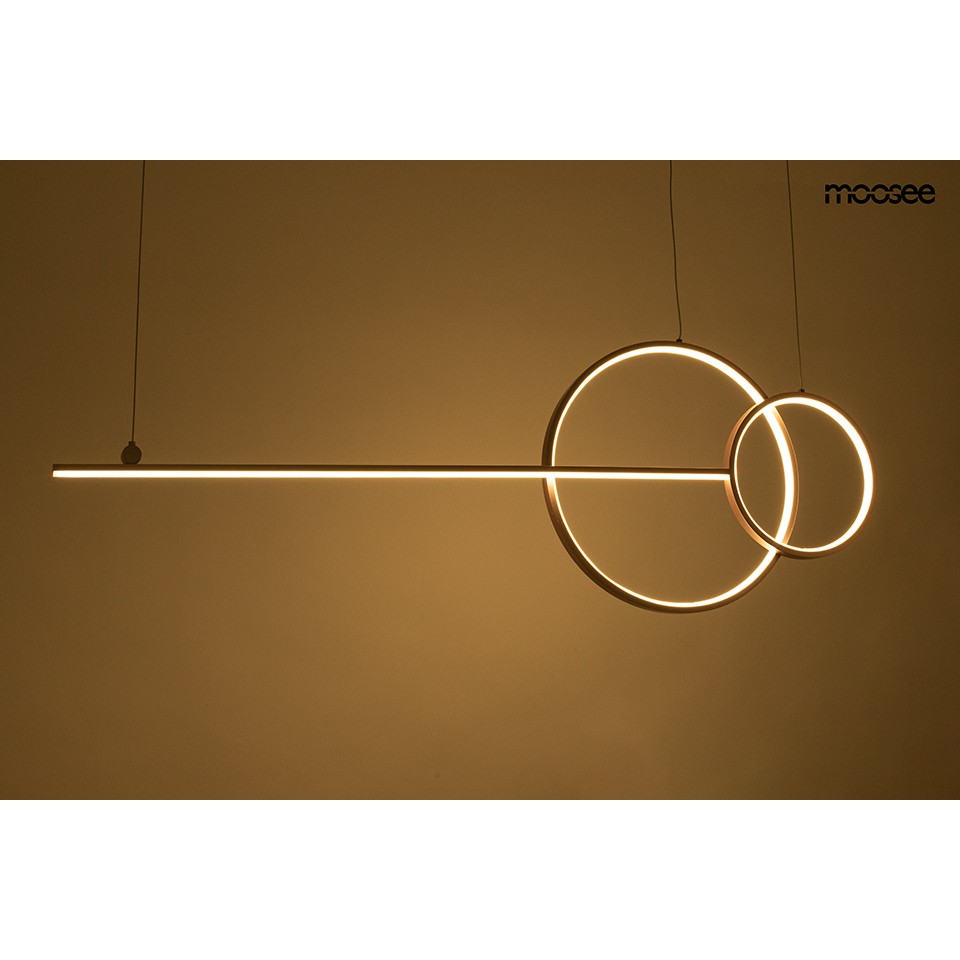Prosta, a jednocześnie niezwykle intrygująca forma opiera się na połączeniu dwóch pierścieni i poziomej linii, tworząc kompozycję inspirowaną nowoczesną grafiką.