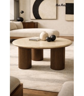 Postaw na unikalny styl i jakość – wybierz MaMaison stolik kawowy ORGANIC trawertyn / drewno i ciesz się niepowtarzalnym designem, który przetrwa lata, zachowując swój naturalny urok i wyrafinowaną elegancję.