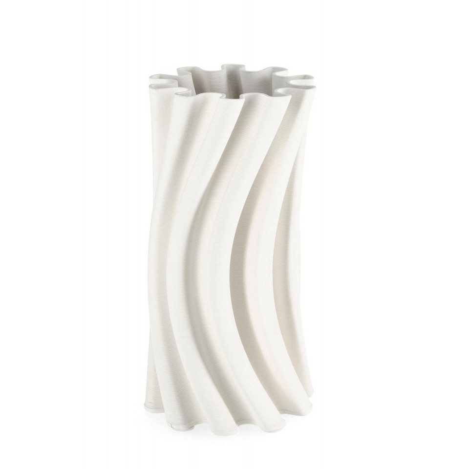 BIZZOTTO wazon HAYLEE 31 biały to nowoczesna i dekoracyjna forma zachwycająca płynnym kształtem oraz subtelną, warstwową fakturą tworzoną w technologii druku 3D.
