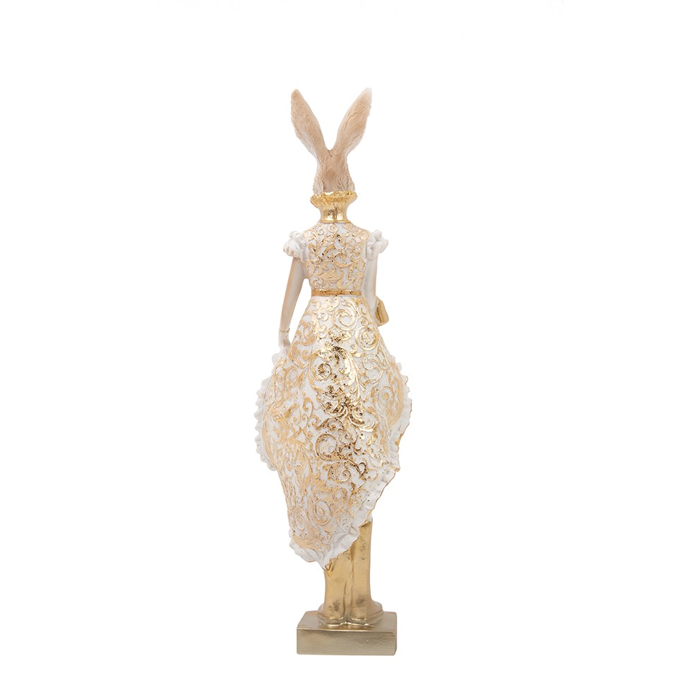 Figurka dekoracyjna SHP RABBIT beżowa / złota zachwyca subtelną stylistyką oraz dopracowanymi detalami, które nadają jej wyjątkowego, artystycznego charakteru. Stylizowana postać królika w ozdobnej sukni tworzy oryginalną i przyciągającą uwagę dekorację, idealnie komponującą się z wnętrzami w stylu glamour oraz klasycznymi aranżacjami.
