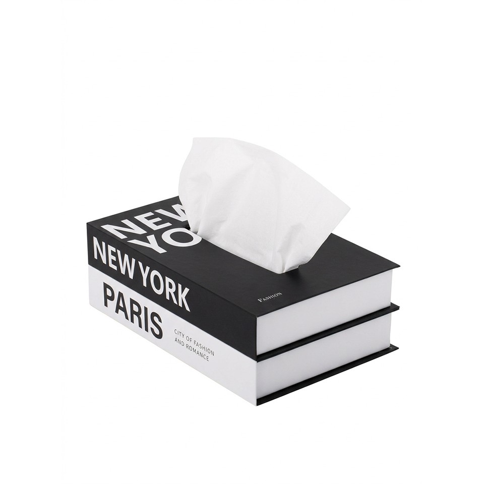 Pojemnik na chusteczki SHP BOOKER biały / czarny to elegancki, minimalistyczny dodatek inspirowany formą stylowej książki, który łączy funkcjonalność z dekoracyjnym charakterem.