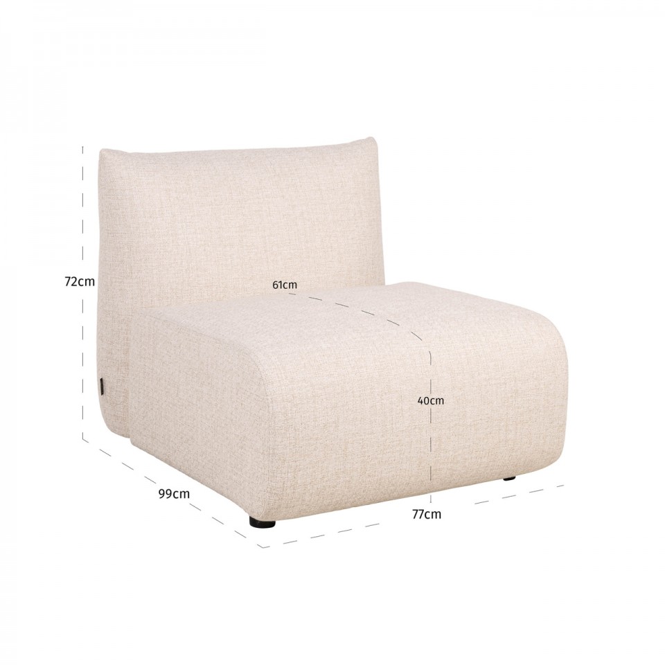 Moduł DAWSON świetnie sprawdzi się jako samodzielne siedzisko lub jako element narożnika tworzący większą, funkcjonalną powierzchnię wypoczynkową. Neutralny beżowy kolor doskonale wpisuje się w aranżacje nowoczesne, minimalistyczne i naturalne.