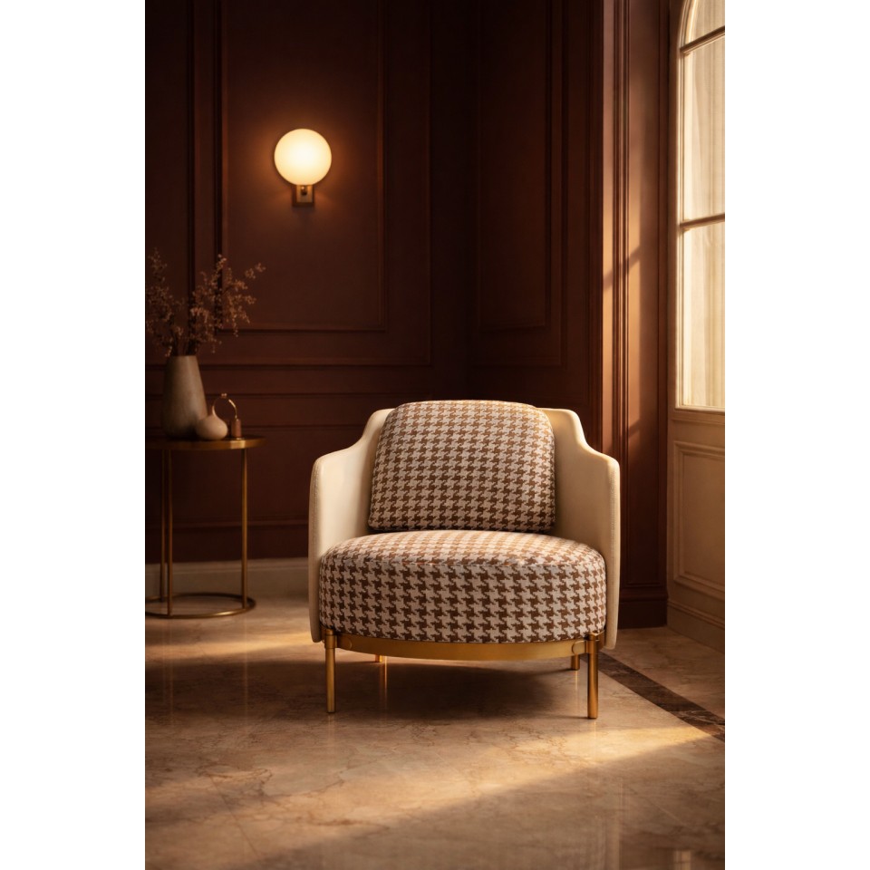 Fotel VENICE – stylowa pepitka i złote wykończenia do eleganckich wnętrz