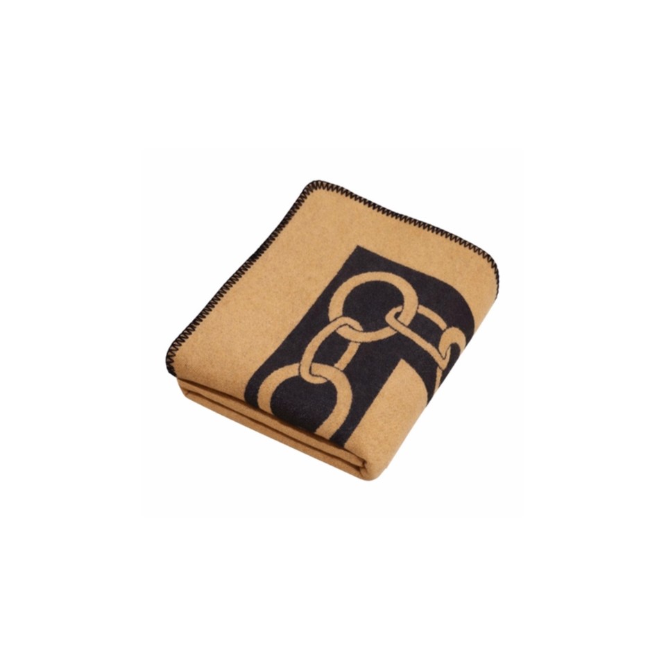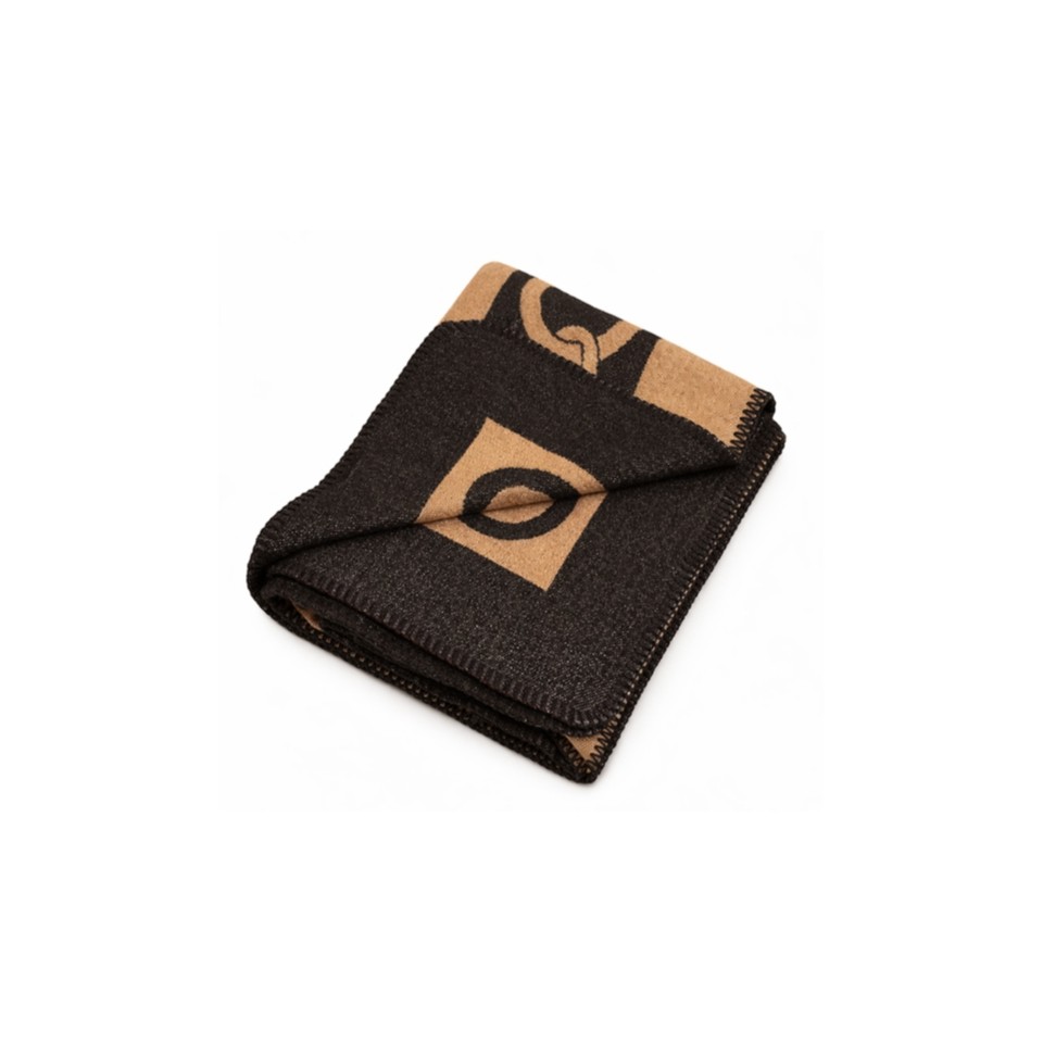 Wyróżnia się nowoczesnym wzorem w geometryczne bloki z literą „H” w narożnikach, które dodają mu charakteru i luksusowego stylu.