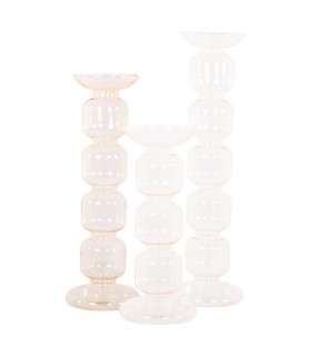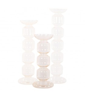Świecznik YALENA S dostępny jest również w większej wersji oraz w delikatnym różowym odcieniu pod nazwą Sanae.