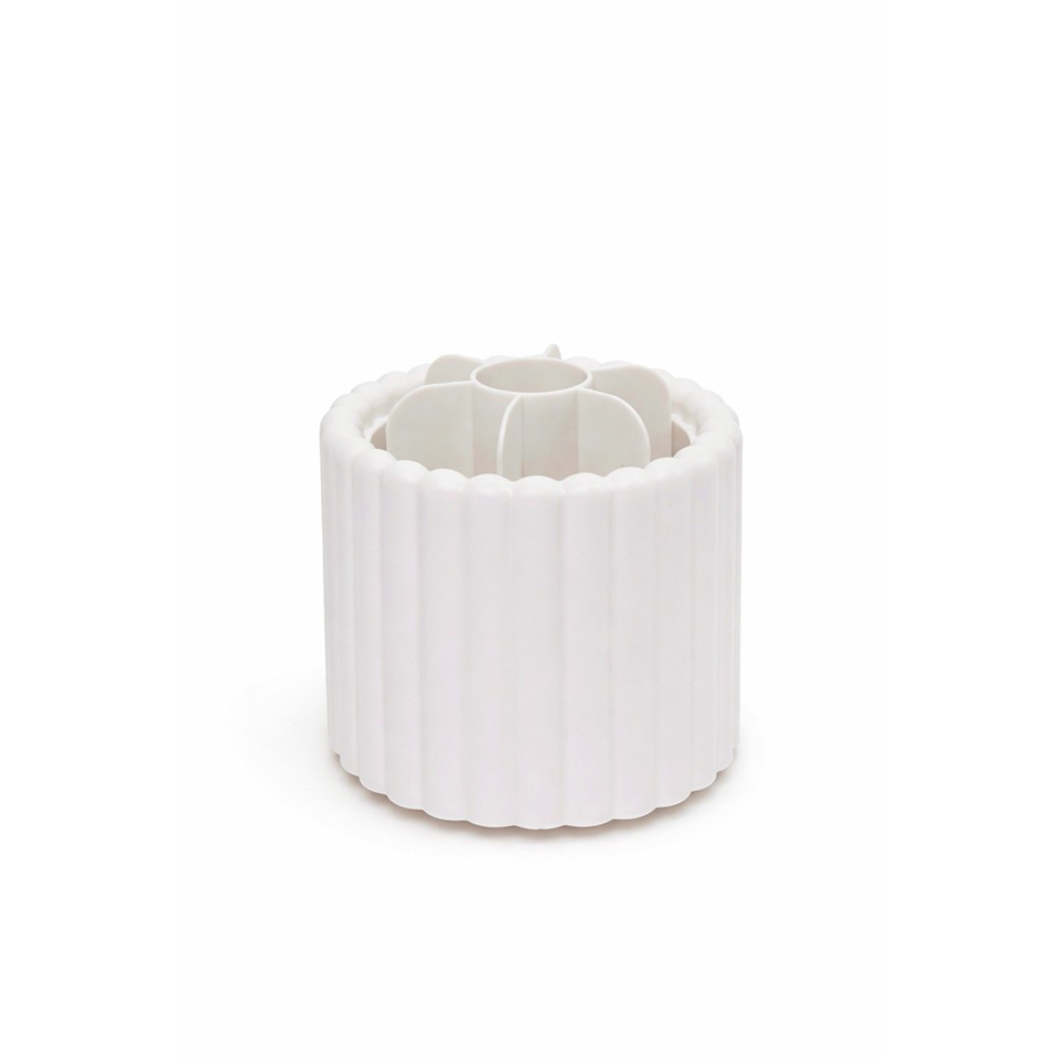 Wykonany z trwałego białego tworzywa sztucznego, wyróżnia się subtelną, ryflowaną powierzchnią o nowoczesnym charakterze.