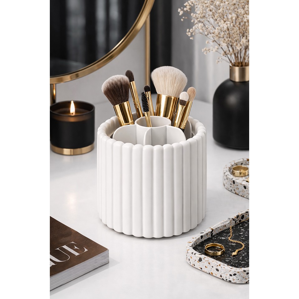 Idealnie sprawdzi się na toaletce, w łazience lub na biurku jako elegancki element organizacji kosmetyków.