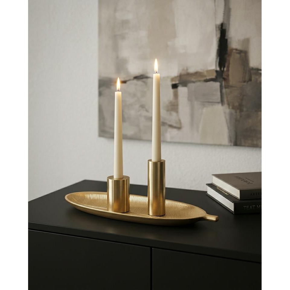 Smukły, wydłużony kształt sprawia, że idealnie nadaje się do eksponowania świec, biżuterii lub drobnych dodatków.