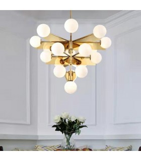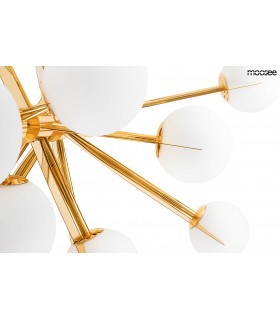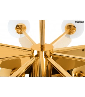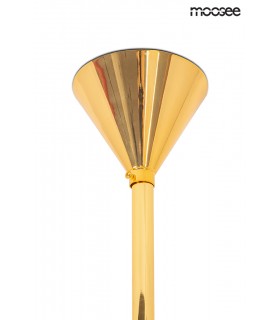 MOOSEE lampa wisząca SOLEI złota. Metalowa konstrukcja, stożkowa podsufitka i 18 szklanych kloszy tworzy niezwykle nowoczesną oprawę.