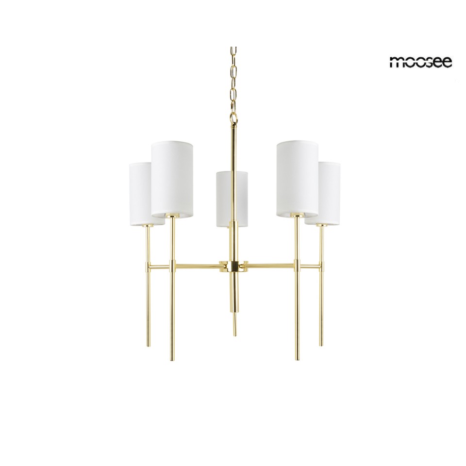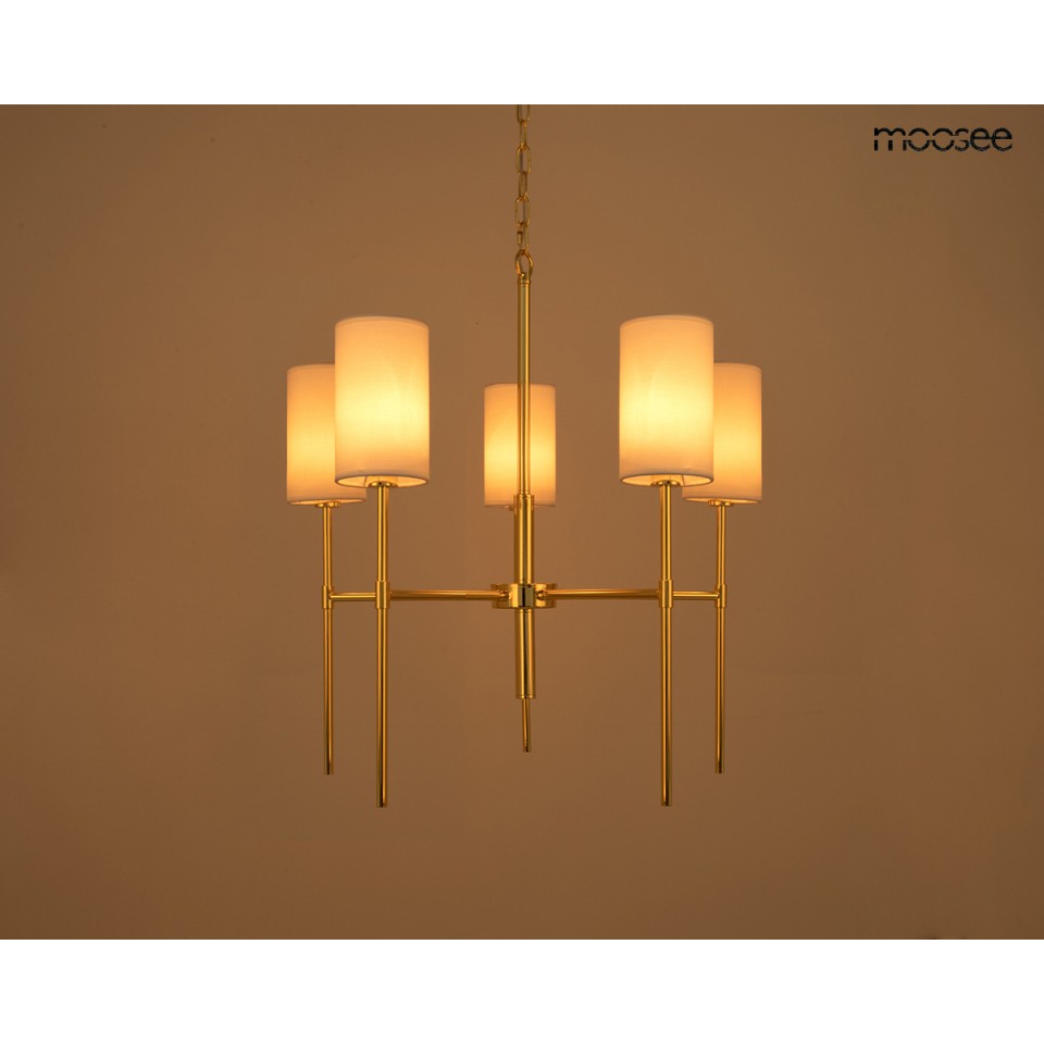 MOOSEE lampa wisząca IMPERIO 5 złota to wyrafinowany wybór dla osób poszukujących stylowego i eleganckiego oświetlenia do swojego wnętrza.