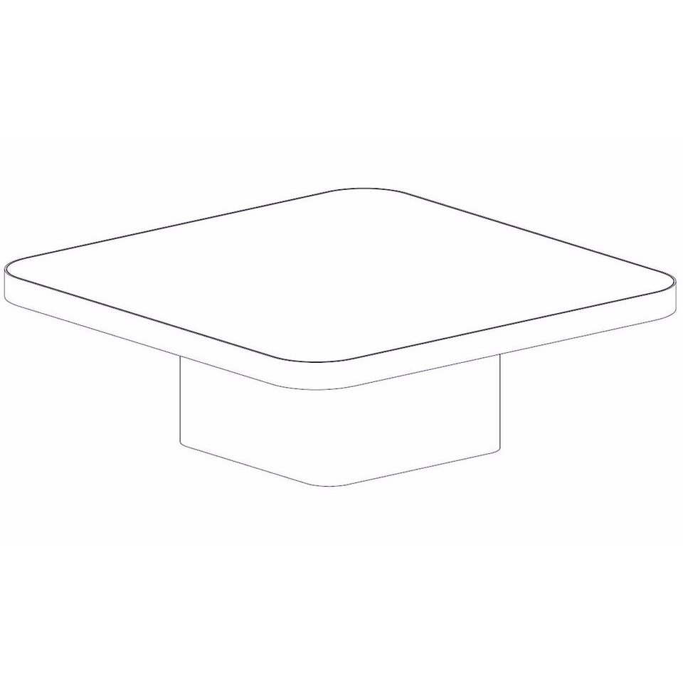 Ich geometryczne blaty wykonane z jasnej ceramiki osadzone są na solidnych, metalowych podstawach w odcieniu szlachetnego złota.