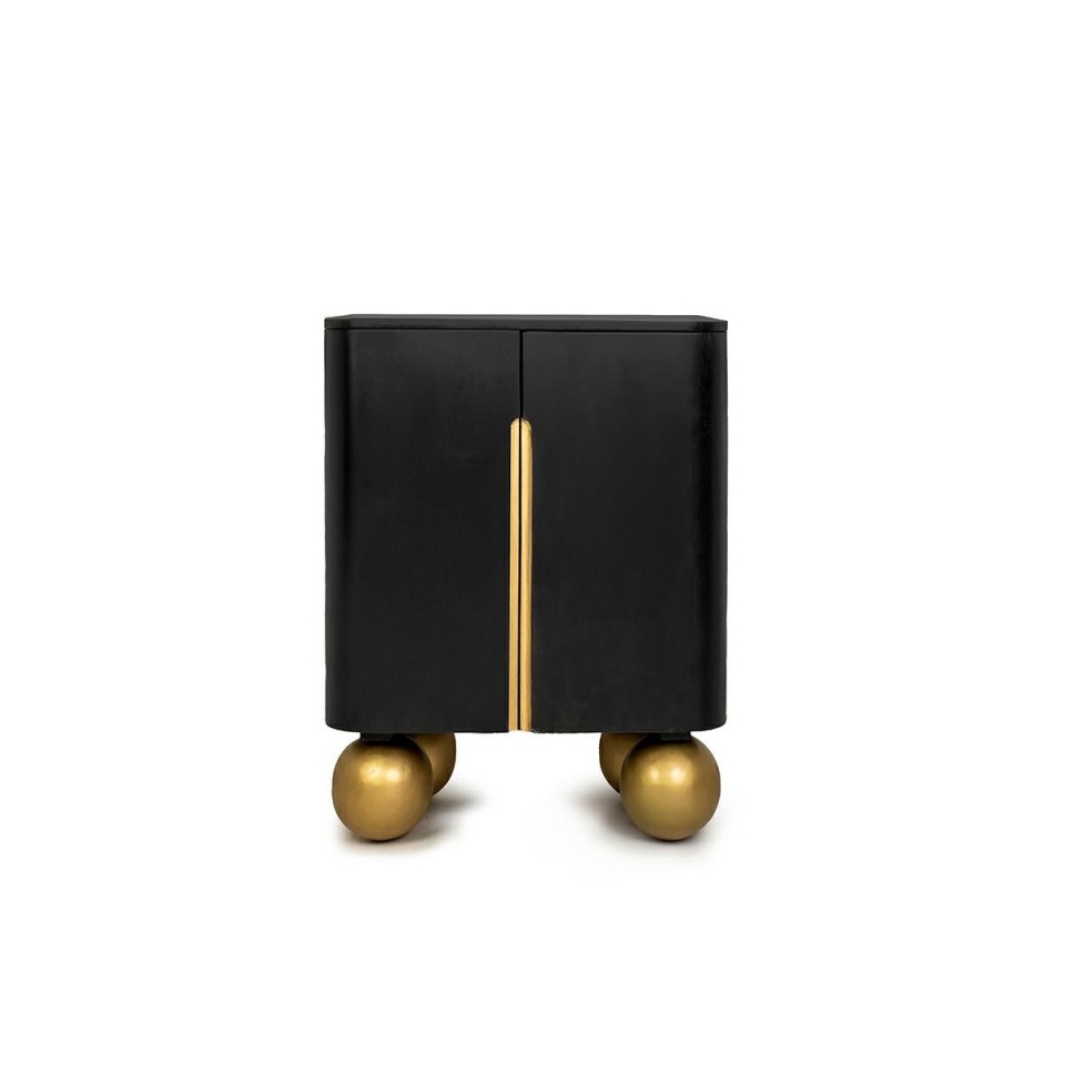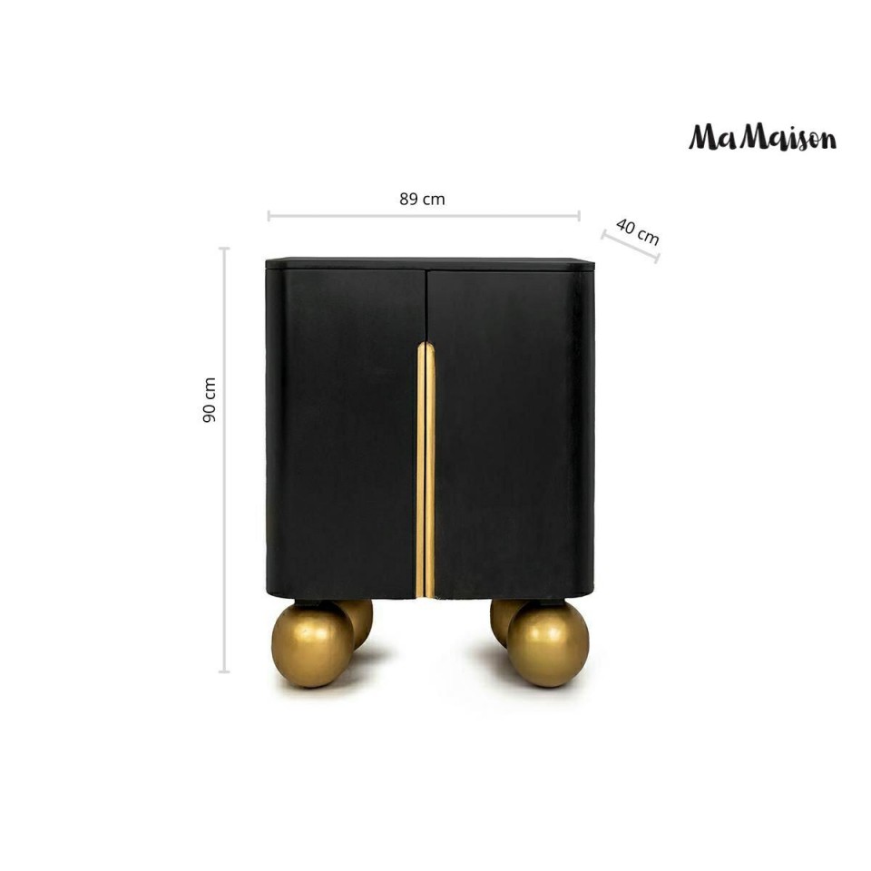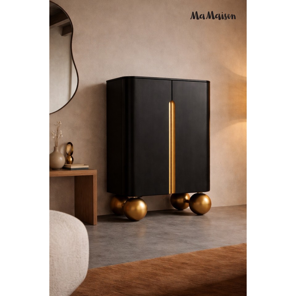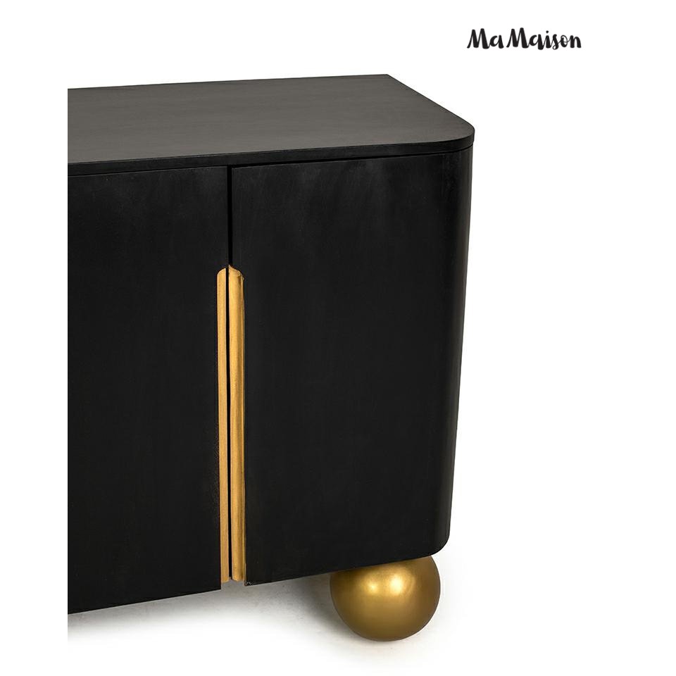 Komoda ORGANIC SHORT marki MaMaison to wyjątkowe połączenie wyrazistego stylu i dopracowanej formy. Głęboka czerń frontów zestawiona ze złotymi detalami oraz naturalnym drewnem mango tworzy harmonijną całość, która przyciąga wzrok i nadaje wnętrzu indywidualnego charakteru.