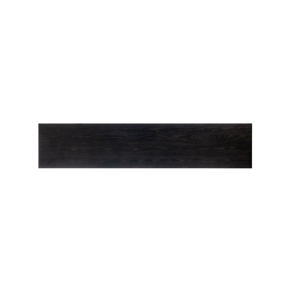 Korpus został wykonany z forniru z czarnego dębu, który nadaje meblowi głębię i szlachetny charakter. Konstrukcję uzupełniają ramy ze stali nierdzewnej oraz metalowe detale w subtelnym odcieniu mosiądzu, podkreślające ekskluzywny styl kolekcji.