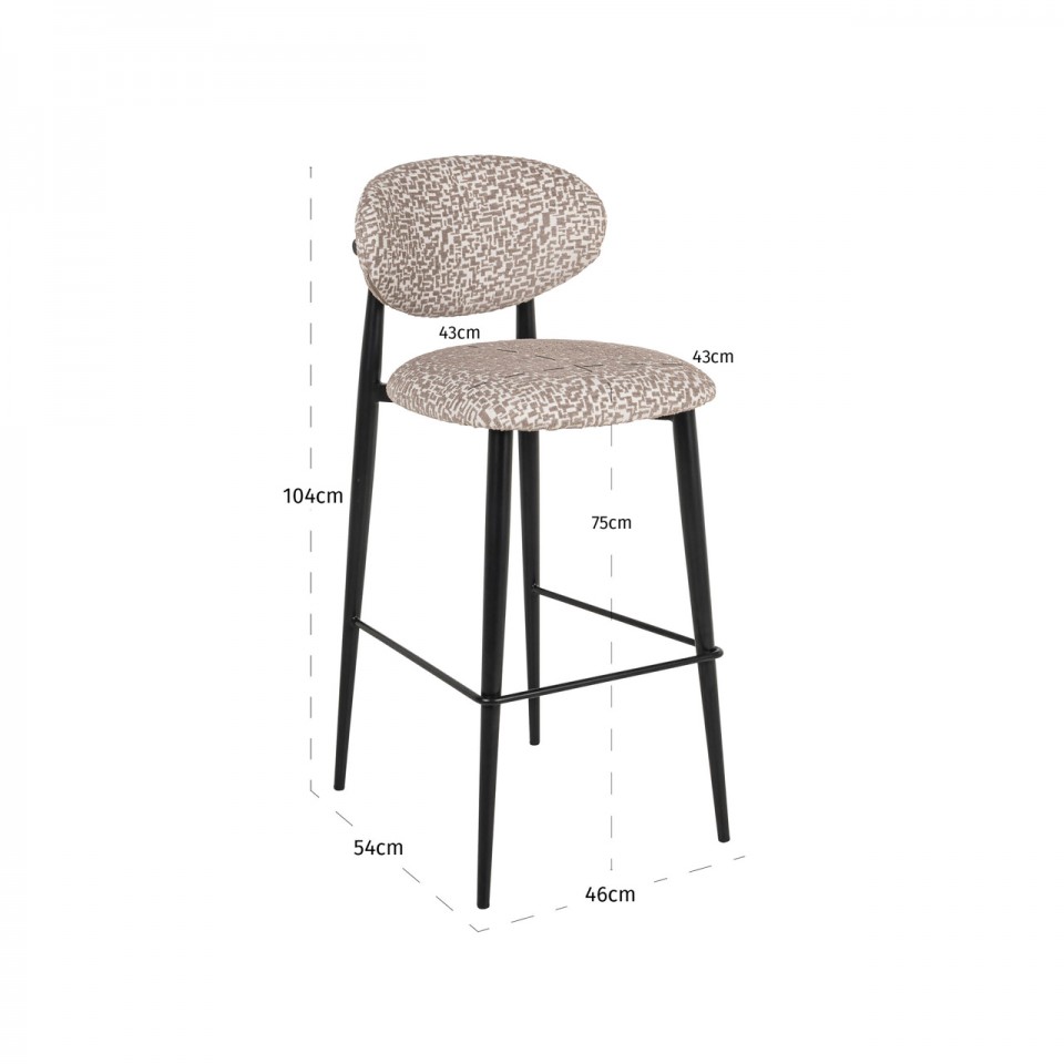RICHMOND krzesło barowe DANTES natural geo - trudnopalne to propozycja dla osób ceniących wyrafinowany design inspirowany stylem retro, uzupełniony nowoczesną elegancją. Naturalny odcień beżu wprowadza do wnętrza ciepło i spokój, doskonale wpisując się w aktualne trendy aranżacyjne.