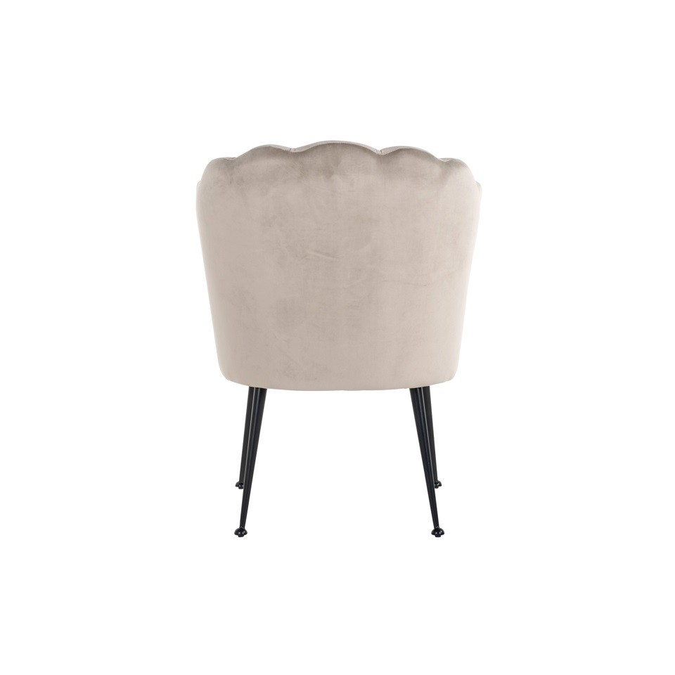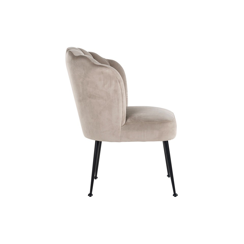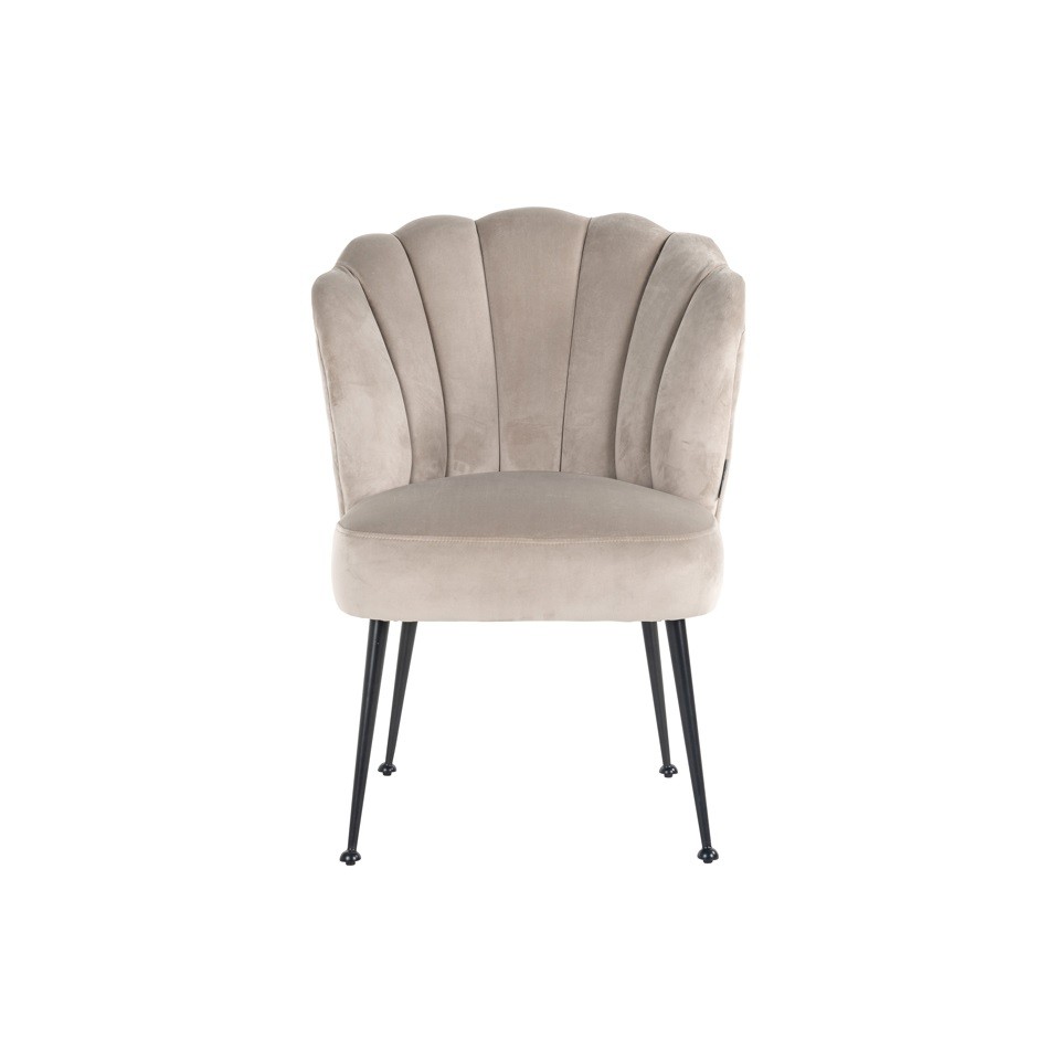 Krzesło RICHMOND PIPPA KHAKI z welurową tapicerką i czarną metalową podstawą to elegancki model o modnym oparciu w kształcie muszli.