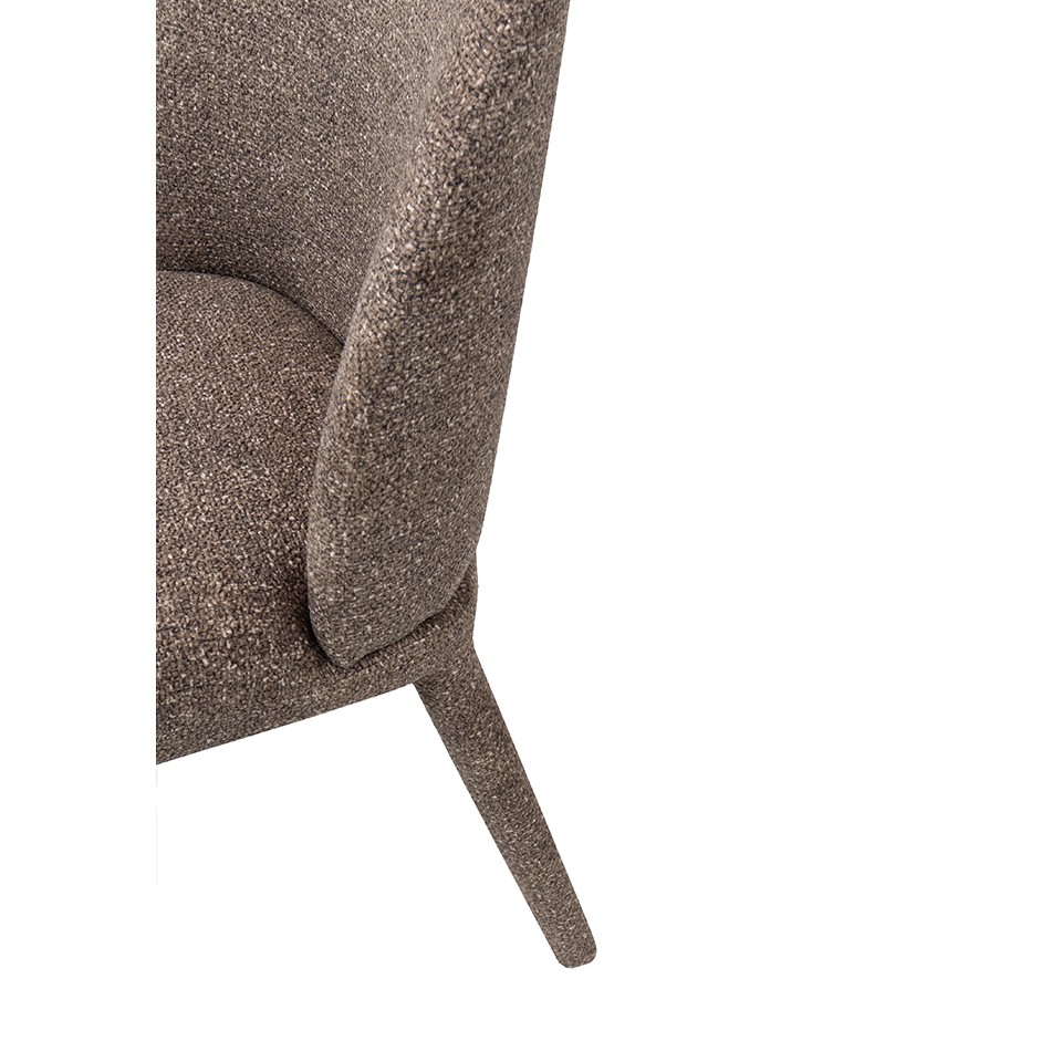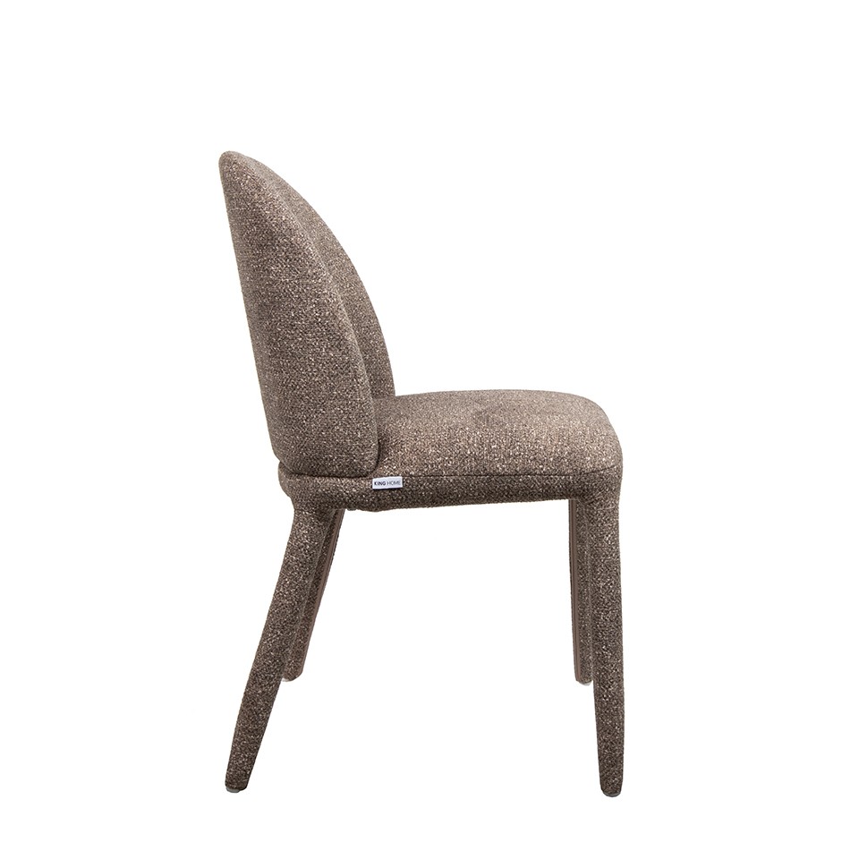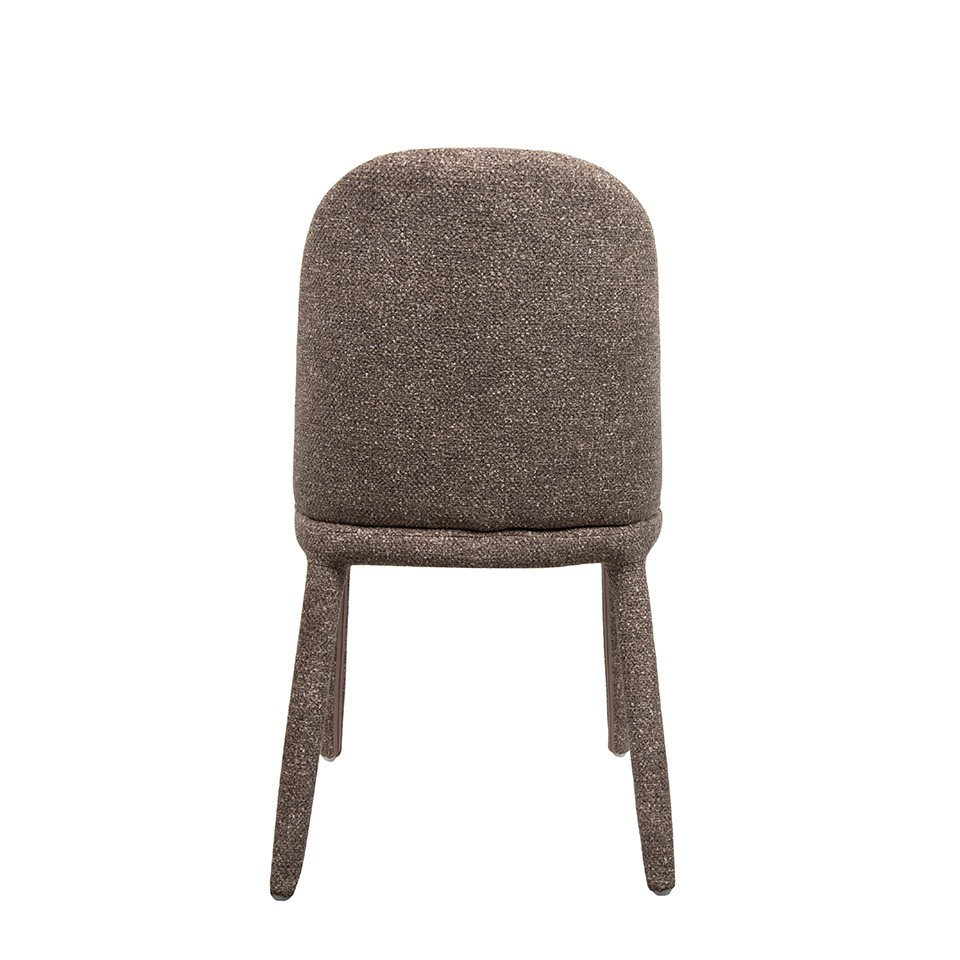 Krzesło TUYA brązowe wyróżnia się nowoczesną formą i subtelną elegancją, dzięki czemu znakomicie uzupełnia zarówno minimalistyczne, jak i bardziej przytulne aranżacje. Jego estetyka opiera się na zaokrąglonych liniach, które nadają mu łagodny, harmonijny charakter.