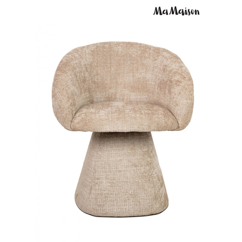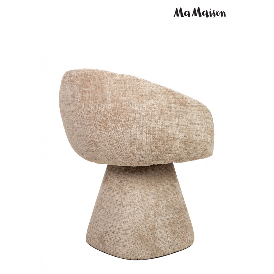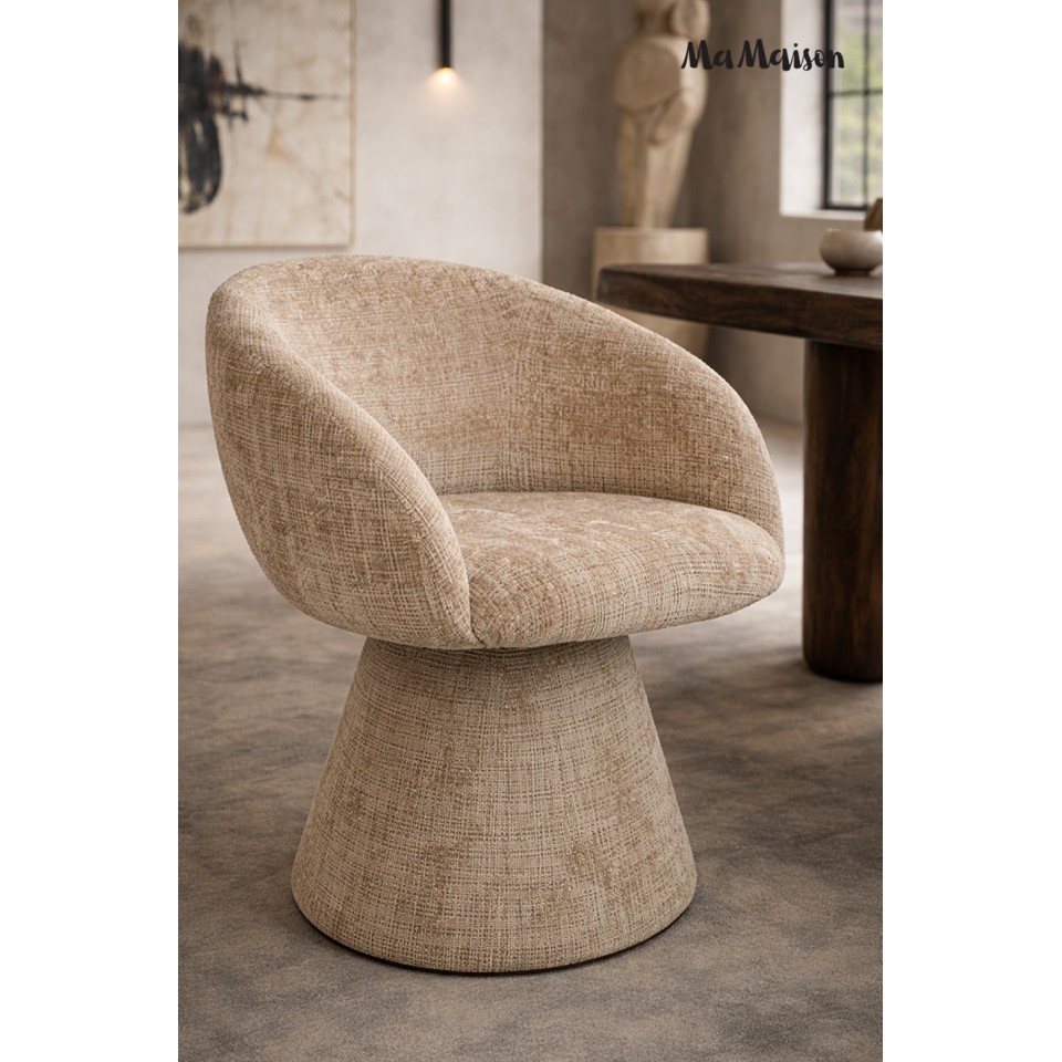 Krzesło tapicerowane obrotowe MaMaison PEDRA beżowe to harmonijne połączenie oryginalnej, zaokrąglonej formy i nowoczesnej funkcjonalności. Miękka, rzeźbiarska sylwetka nadaje mu wyjątkowy charakter, dzięki czemu staje się nie tylko wygodnym siedziskiem, ale także wyrazistym elementem aranżacji.