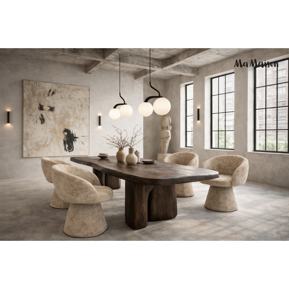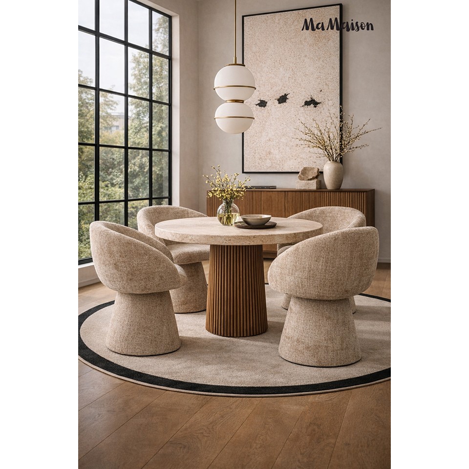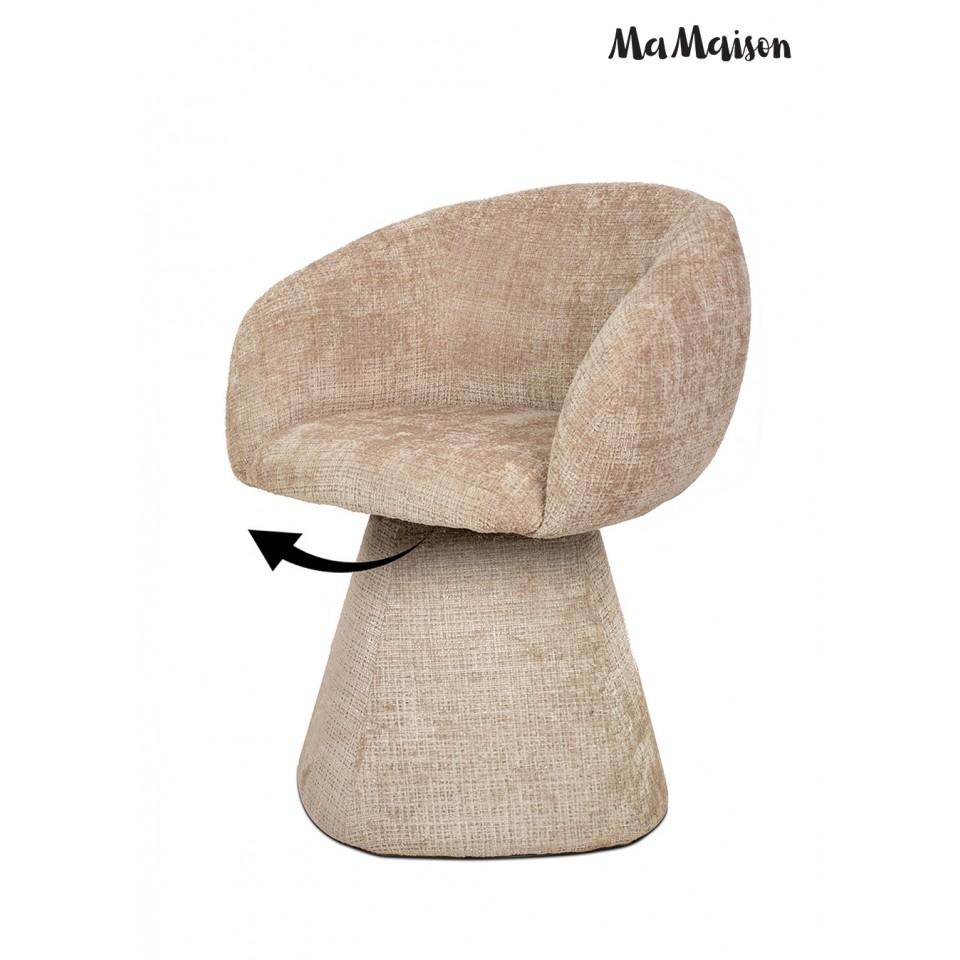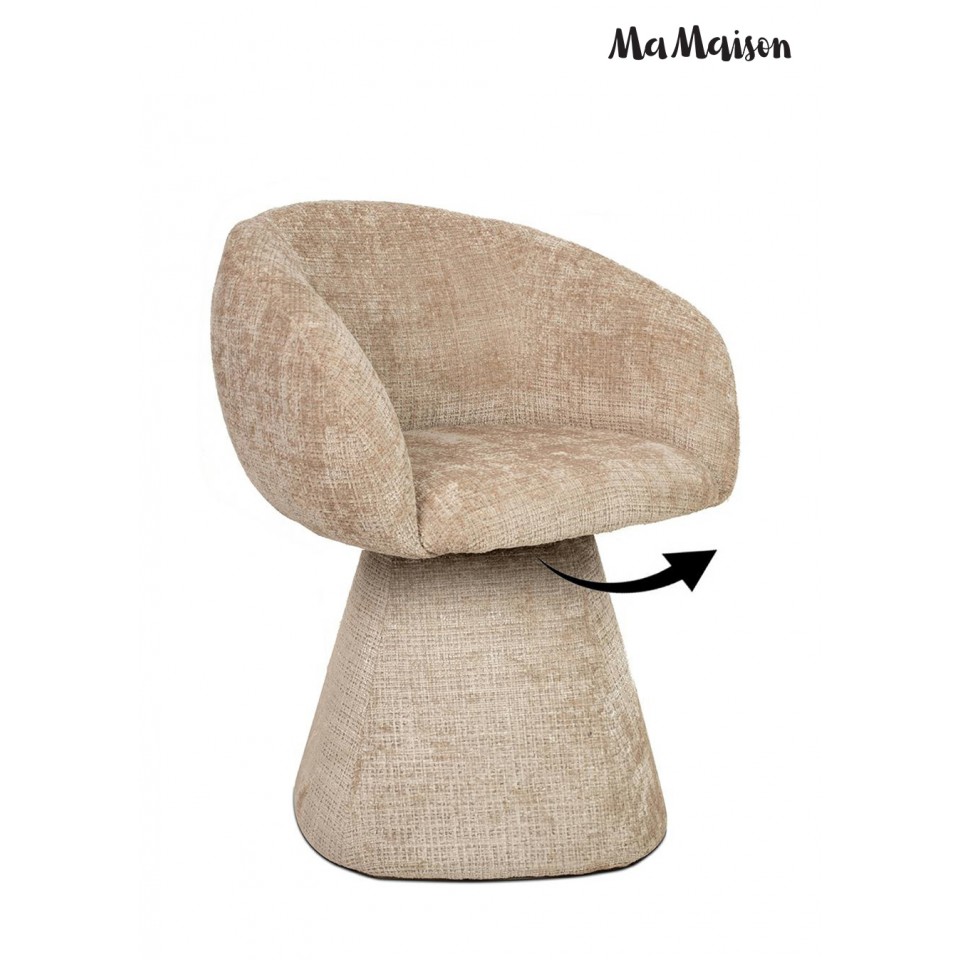 Krzesło tapicerowane obrotowe MaMaison PEDRA beżowe to harmonijne połączenie oryginalnej, zaokrąglonej formy i nowoczesnej funkcjonalności. Miękka, rzeźbiarska sylwetka nadaje mu wyjątkowy charakter, dzięki czemu staje się nie tylko wygodnym siedziskiem, ale także wyrazistym elementem aranżacji.