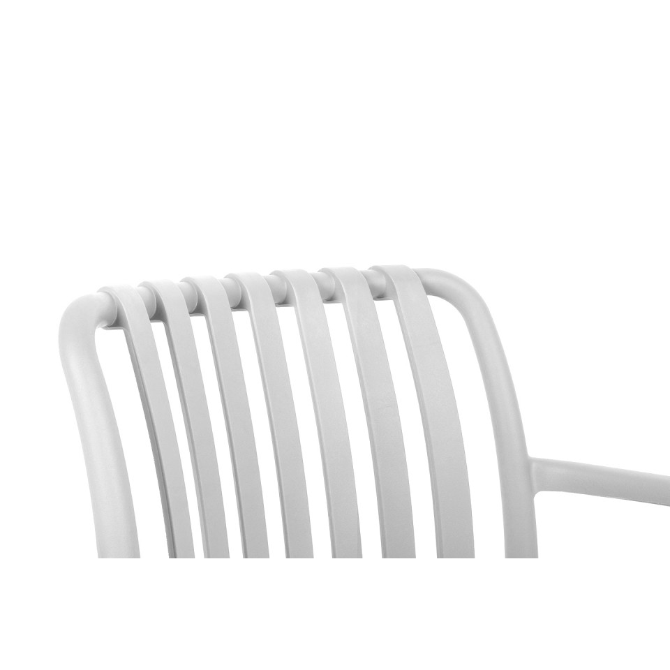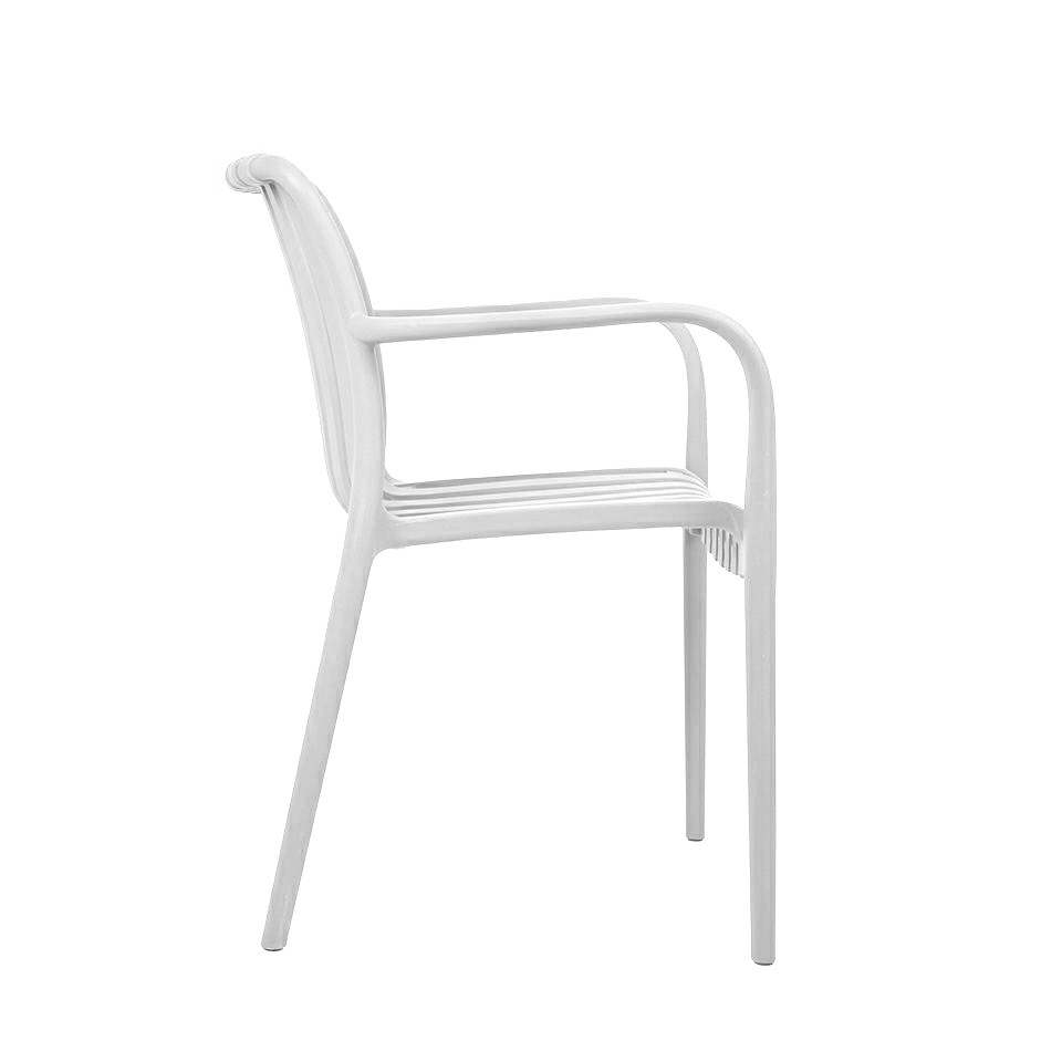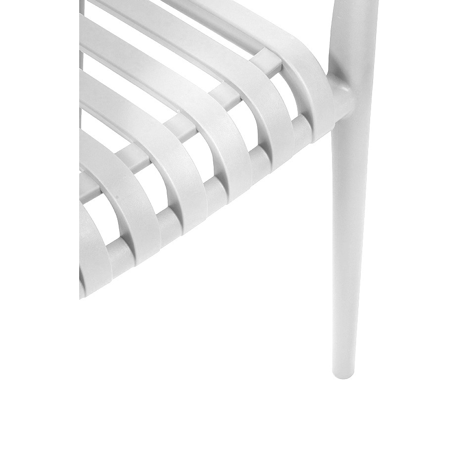Krzesło MODESTO STRIPS ARM białe to nowoczesny, sztaplowany model z podłokietnikami do wnętrz, restauracji i ogródków.