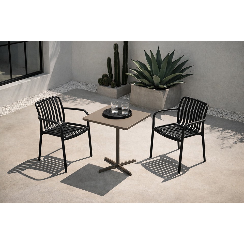 MODESTO STRIPS ARM – czarne krzesło do wnętrz i przestrzeni zewnętrznych
