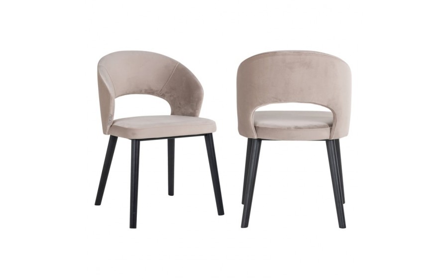 Kształtne oparcie wykończone jest aksamitną tkaniną welurową w kolorze beżowym/ khaki.