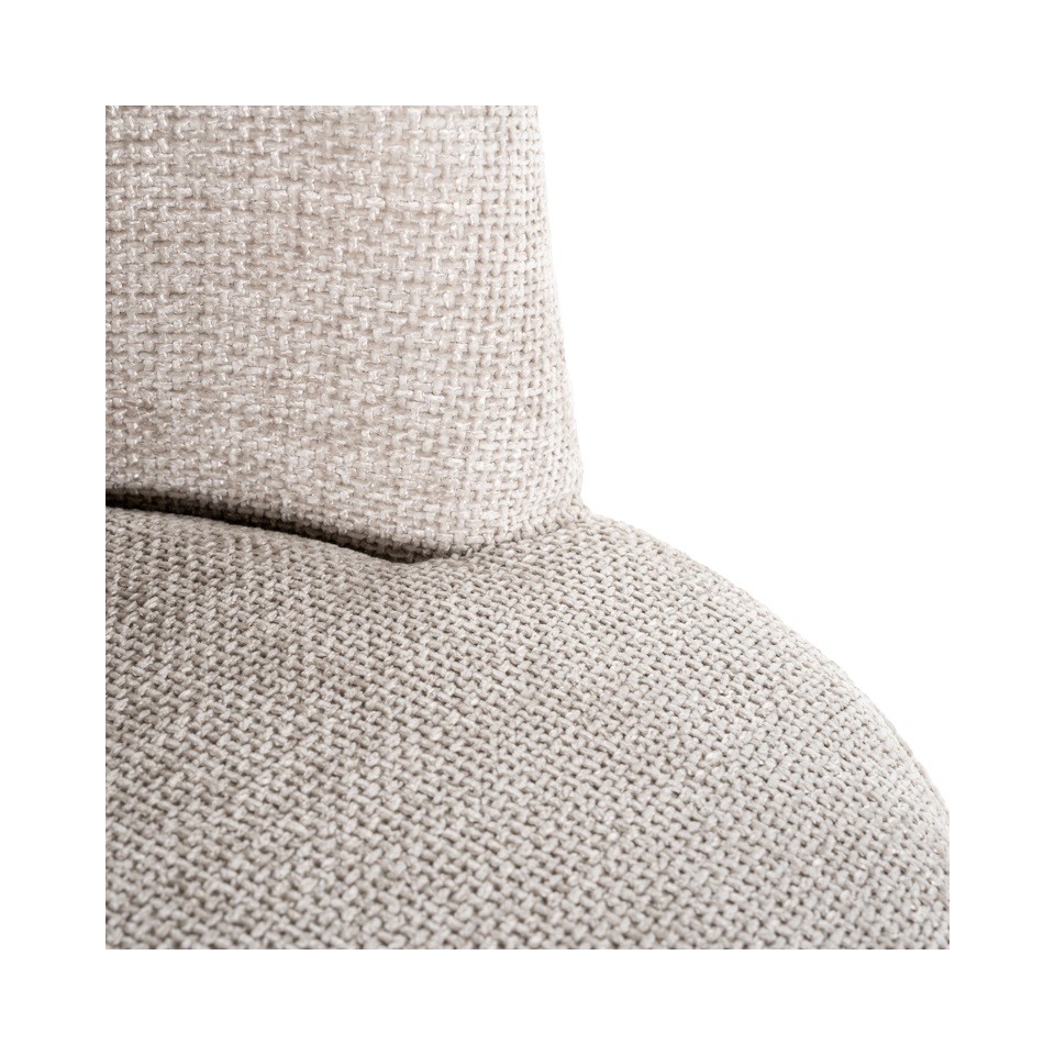 Smukłe, czarne nogi wykonane z metalu nadają bryle lekkości i podkreślają jej nowoczesny charakter. Kontrast jasnej tkaniny z ciemną podstawą tworzy elegancką, uniwersalną kompozycję pasującą do aranżacji modern, japandi czy soft loft.