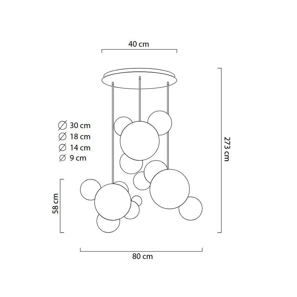 Wewnątrz każdej z kul umieszczono złoty pręt zakończony wbudowanym modułem LED. Transparentne szkło w zestawieniu z anodowanym aluminium nadaje oprawie elegancki, luksusowy charakter.