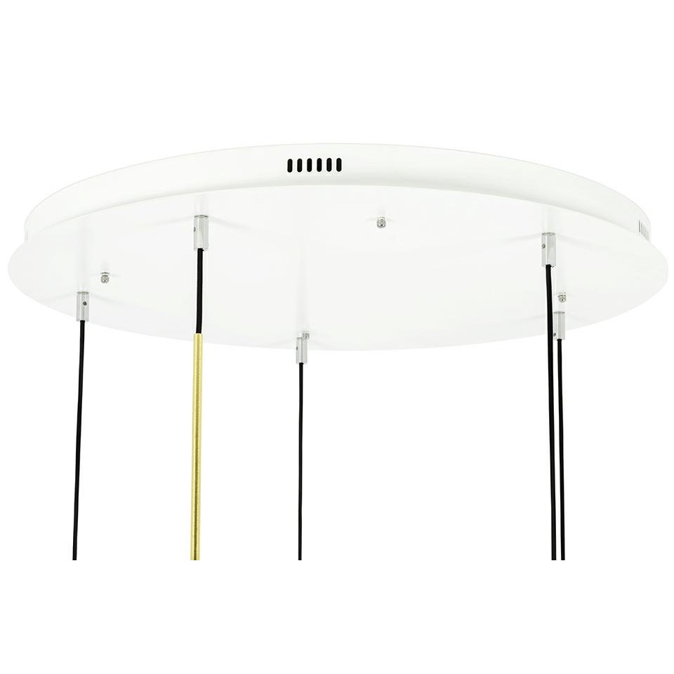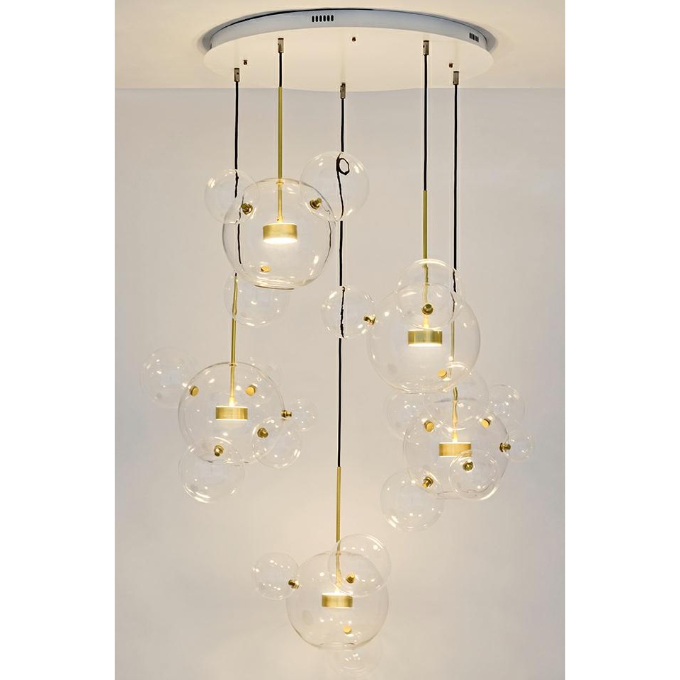 Lampa wisząca MOOSEE Capri Disc 5 to efektowna kompozycja szklanych kul i anodowanego aluminium, tworząca świetlną instalację o rzeźbiarskim charakterze.