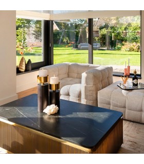 Stolik kawowy BILTMORE marki Richmond to wyjątkowe połączenie naturalnego piękna włoskiego trawertynu i nowoczesnego designu.