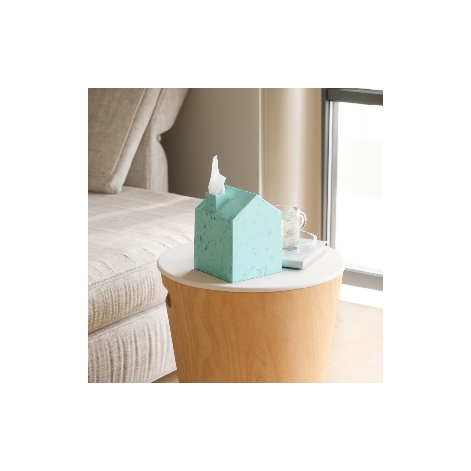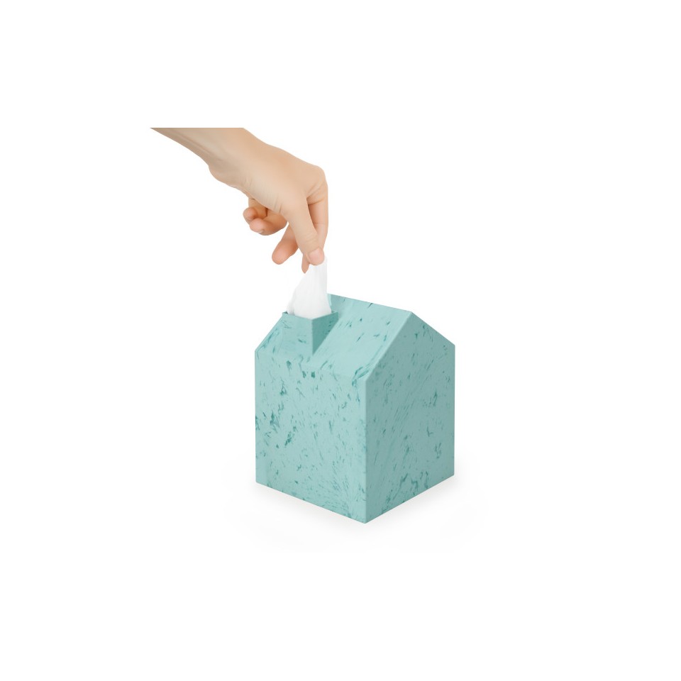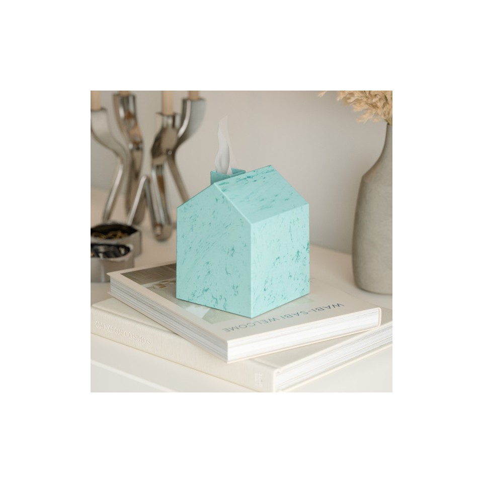 Model zaprojektowano z myślą o estetycznym ukryciu standardowego, kwadratowego opakowania chusteczek, dzięki czemu staje się ono eleganckim elementem wystroju zamiast typowej codziennej potrzeby. Stonowany, niebieski kolor harmonizuje z nowoczesnymi, minimalistycznymi i skandynawskimi wnętrzami.