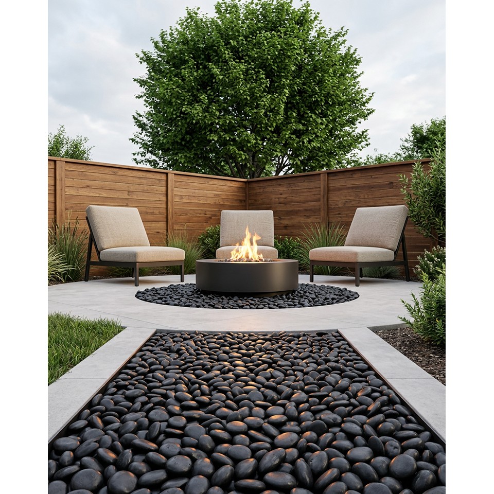 Czarny otoczak polerowany w rozmiarze 2–3 cm wyróżnia się łagodnie zaokrąglonym kształtem, subtelnym połyskiem oraz intensywną, naturalną barwą. Jego estetyka doskonale wpisuje się w aranżacje ogrodowe oraz wnętrza w stylu nowoczesnym, minimalistycznym i rustykalnym.