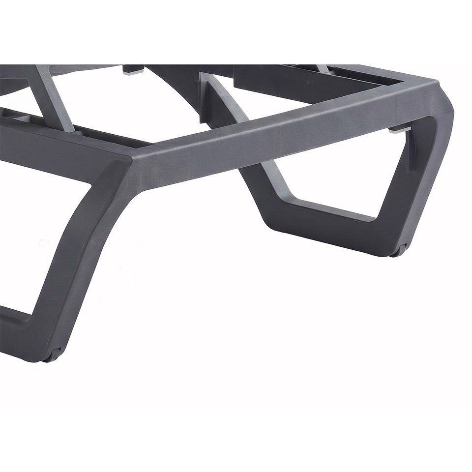 Wbudowane kółeczka, dyskretnie schowane w ramie, umożliwiają sprawne i wygodne przestawianie leżaka bez konieczności podnoszenia. To praktyczne rozwiązanie szczególnie doceniane w przestrzeniach rekreacyjnych.